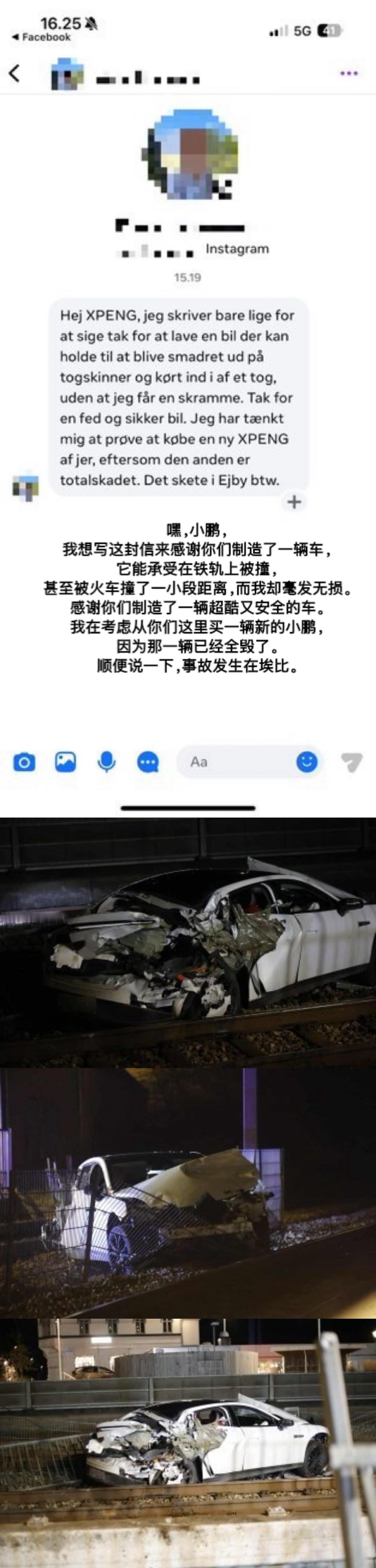 一位丹麦车主在驾驶小鹏P7的过程中,突发疾病整个人失去了意识,随后车辆被火车猛烈撞击,车辆严重受损,而车主在这次事故中奇迹般毫发无损。最近特意不远万里来北京车展现场感谢何小鹏大师兄!太暖心了!丹麦P7车主跨洋感谢何小鹏