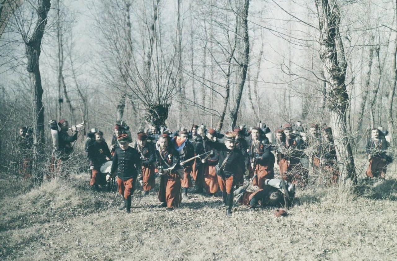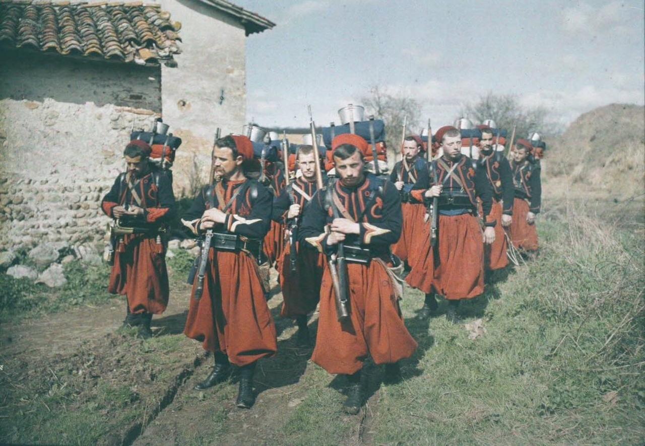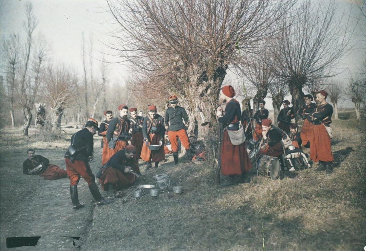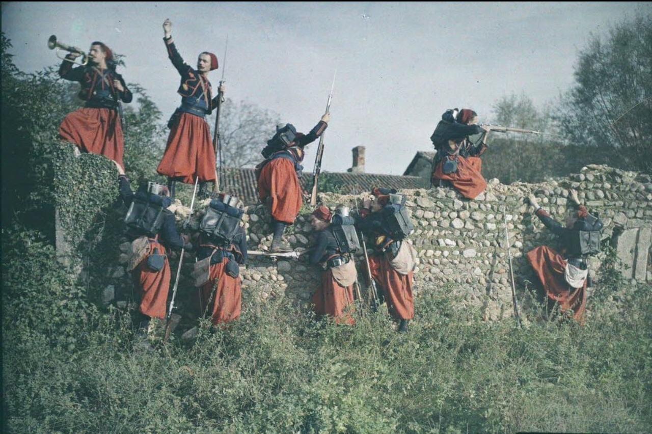 第一次世界大战期间,法国军队摄影师让-巴蒂斯特·图尔纳苏德拍摄的照片。当然,这些照片是摆拍的,并非战斗中拍摄的! 四张由法国陆军摄影师让-巴蒂斯特·图尔纳苏德拍摄的珍贵彩色照片,展现了第一次世界大战期间身着鲜艳红色裤子、蓝色夹克和费兹帽的祖阿夫兵团士兵。 祖阿夫兵团是法国的一支轻步兵部队,士兵大多来自北非,他们传统的鲜艳制服使他们在战争初期成为显眼的目标。 图尔纳苏德是一位军官,也是彩色摄影的先驱,他广泛记录了法国军队,着重展现了19世纪军服与20世纪初机械化作战之间的冲突。