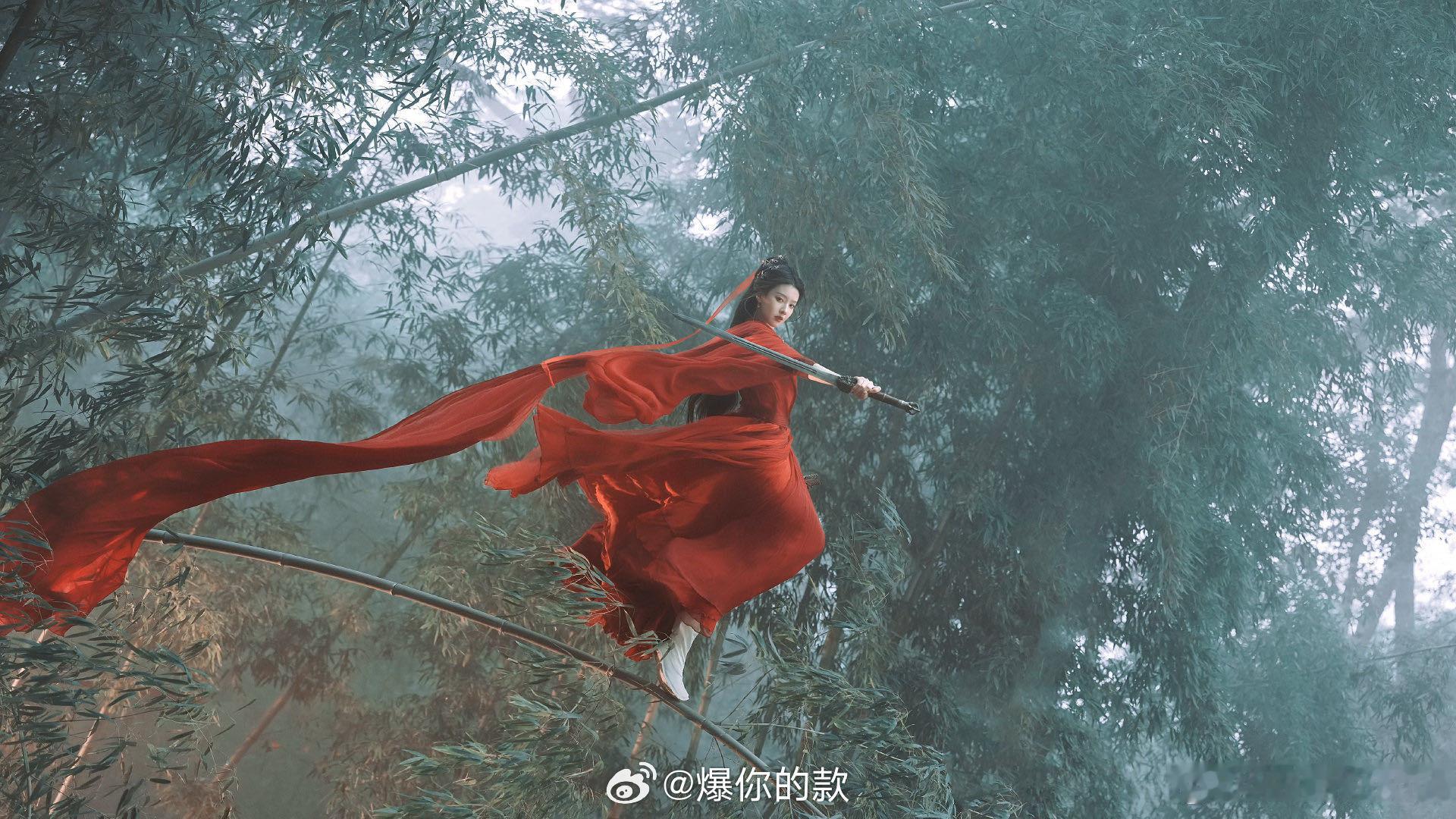 王鹤润红衣好有江湖侠气王鹤润竹林红衣女剑客红衣灼灼,剑影潇潇。这片竹林,是她的江湖。