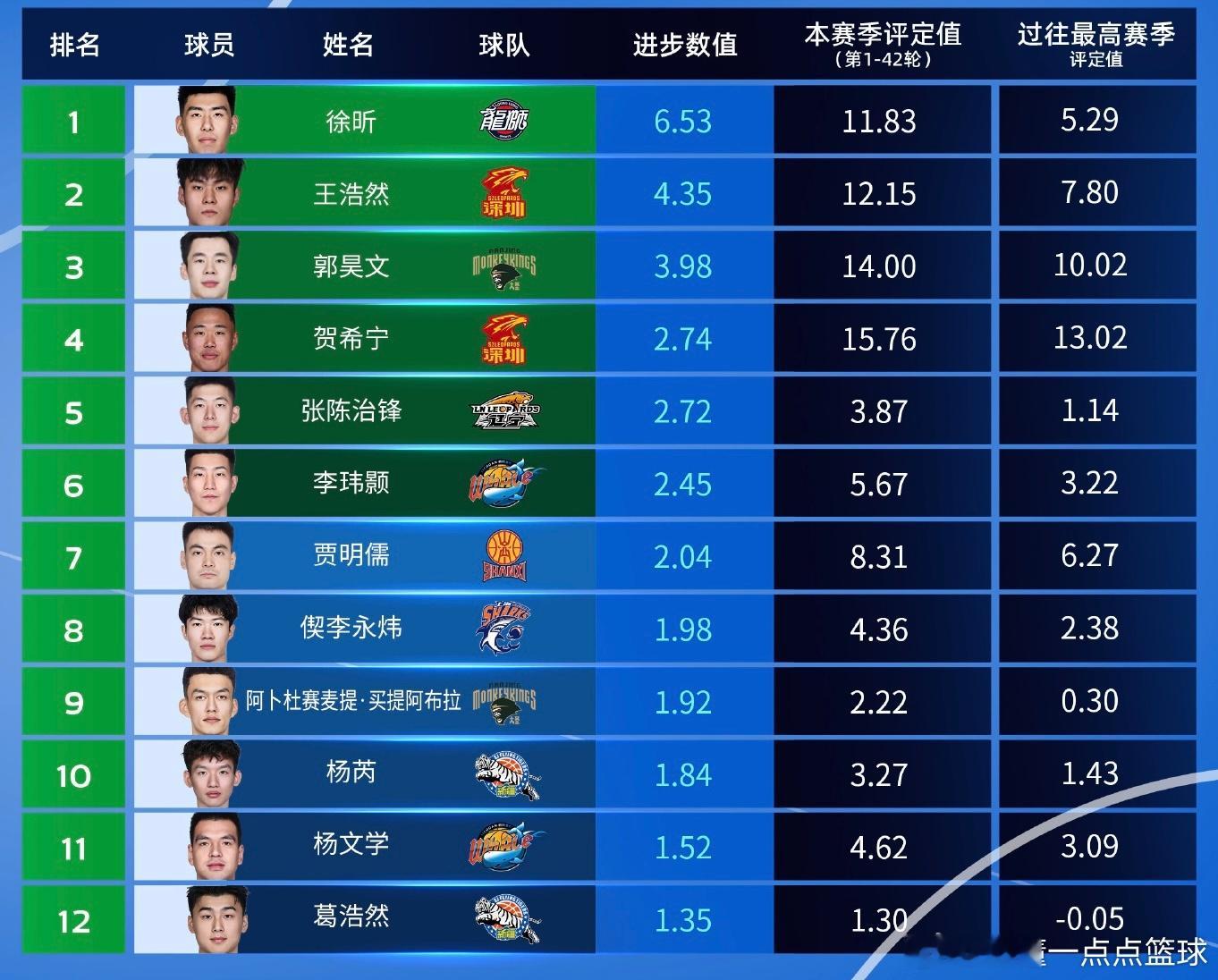 好消息炸锅了!CBA官方刚官宣,徐昕凭全生涯新高表现,拿下2025-2026赛季常规赛1-42轮沙特阿美最具进步球员第一名!本赛季是徐昕CBA第五季,他身披广告男篮战袍出战40场,场均24.7分钟轰出11分+8.3篮板+0.7助攻+1.8盖帽,投篮命中率高达73.9%——五项核心数据全创生涯纪录!最狠的是,他场均1.8帽排联赛第三、本土球员第一,彻底坐稳广州男篮内线大闸!对比上赛季,徐昕场均得分涨超130%,篮板涨近190%,盖帽从1.2次翻倍到1.8次,换队后彻底打出身价!恭喜徐昕!也期待他和龙狮在季后赛继续爆发,给广东球迷长脸!徐昕广州男篮