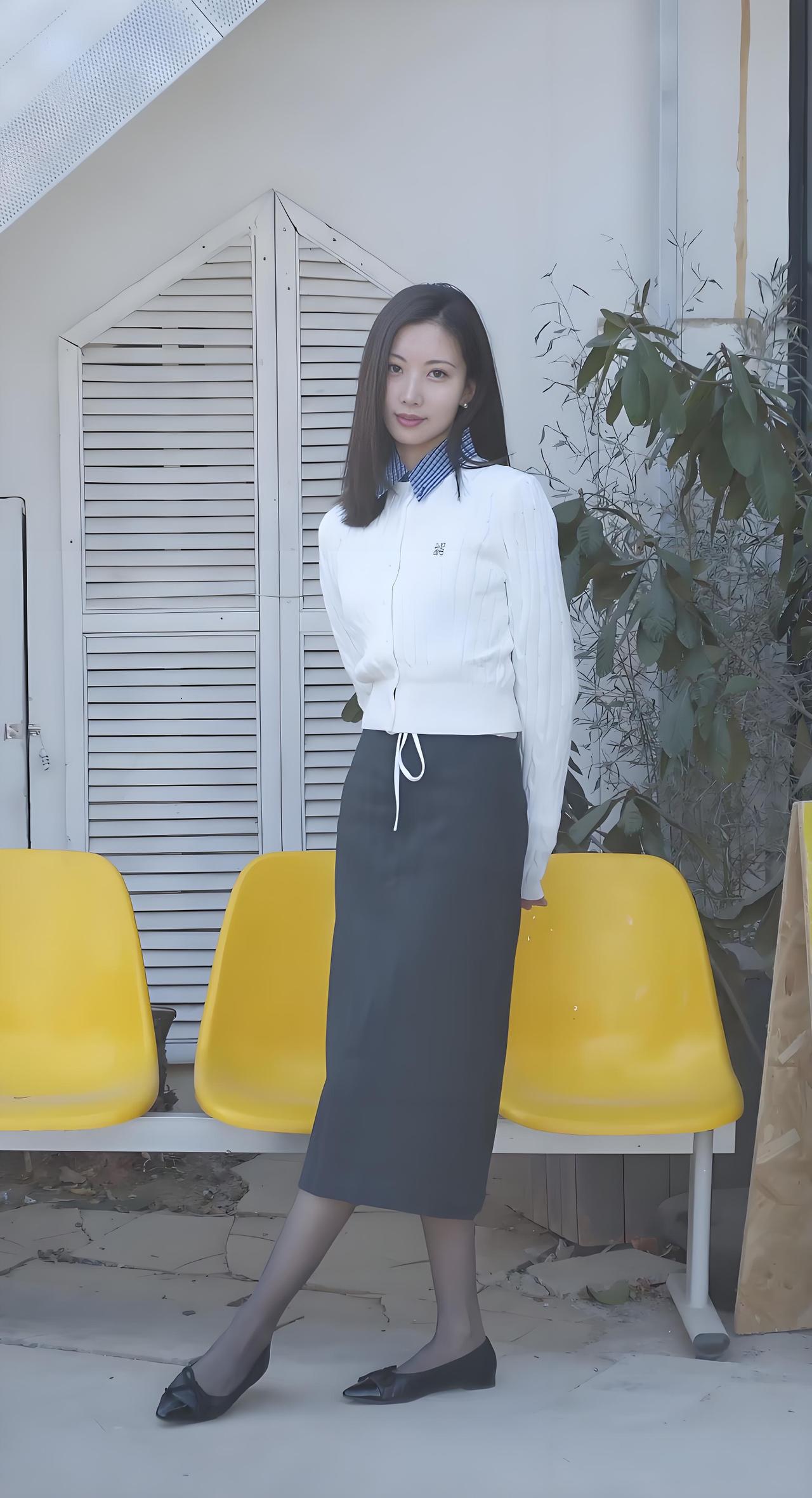优雅职场穿搭,白色衬衫+灰色半身裙,简约大方!