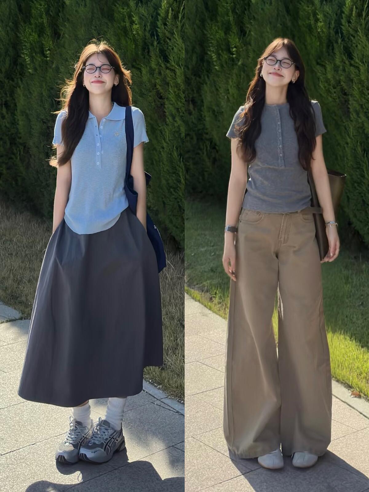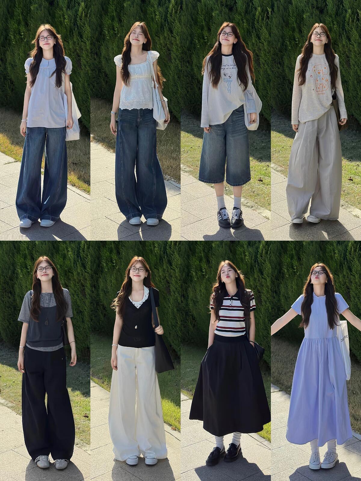 减龄又洋气,太喜欢这样的穿搭了! 松弛感满满的韩系日常风,用清爽的浅蓝、白色与牛仔色打造出夏日氛围。娃娃衫、条纹T、休闲阔腿裤与半裙,搭配帆布鞋和帆布包,轻松穿出元气减龄感,舒服又耐看,每套都透着不费力的时髦感,日常出街这样穿真的又清爽又上镜!