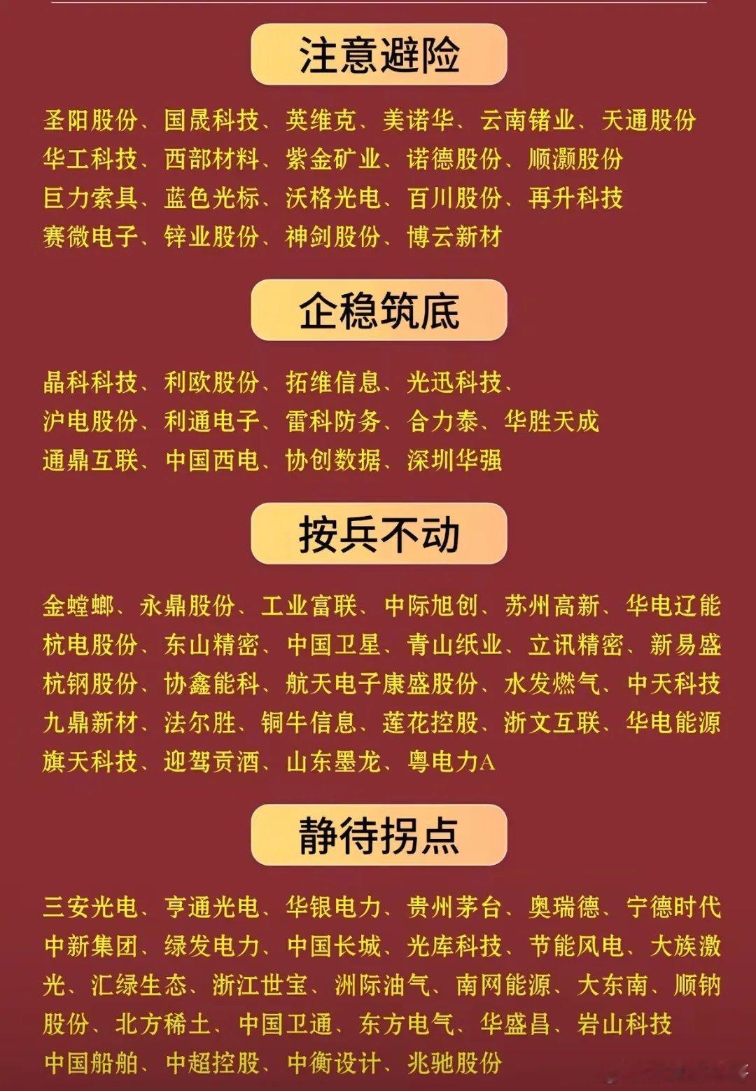 最近的市场一些长幅过高的个股有不少,那现在这些个股就应该注意规避,毕竟在高位再去买入风险比分化太严重。那像一些低位企稳和一些高价值且市值挺大的一些公司就应该持有或者分批买入。还有一些行业拐点可以留意,到了行情催化的时候就可以不错过,迅速入场。