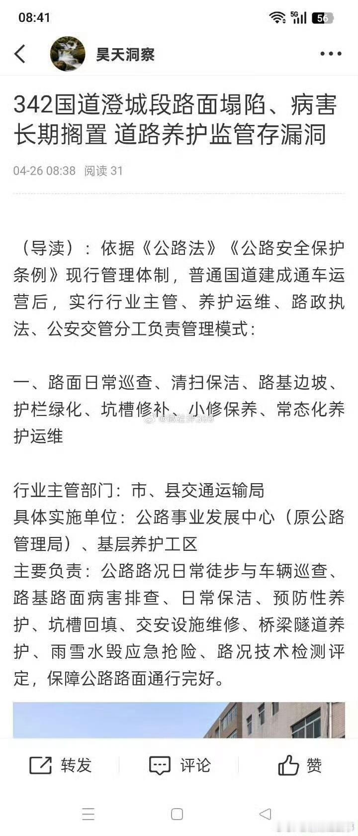 因此,这篇报道提出的追问值得交通主管部门认真对待:对失职行为追责、对全部病害限期整改、补齐养护监管短板。毕竟,国道上的每一道裂口,都不该成为沉默的申诉者。只有当“应管尽管”真正落实到每一公里路面,群众的出行安全才不再是奢望。