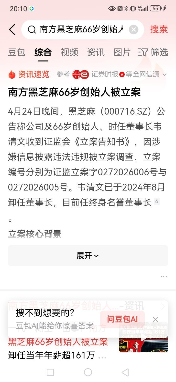 南方黑芝麻的创始人被立案,我记得我很小的时候就吃这个什么南方黑芝麻糊?按我的想法,这应该算是一个非常有名的品牌,该企业也应该是一家比较悠久的企业呀,中国的这些企业家到底都怎么了?好好的做生意不行吗?守法经营才是一个企业长久繁荣的策略。