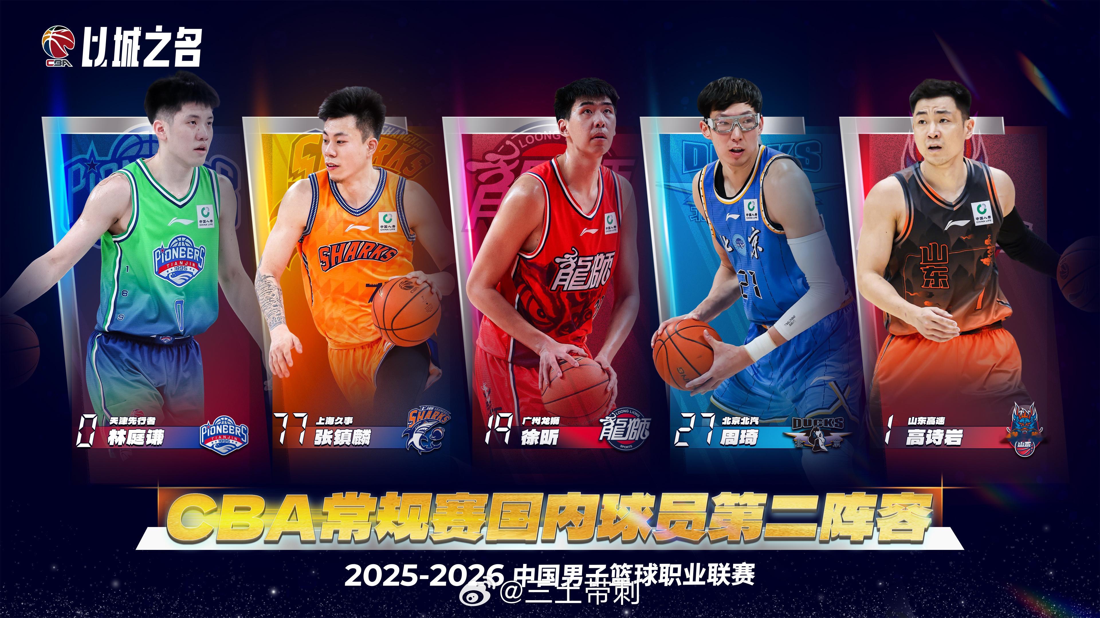 国内一阵:陈盈骏、庞峥麟、贺希宁、李弘权、胡金秋国内二阵:高诗岩、林庭谦、张镇麟、徐昕、周琦国际阵容:小史密斯、威瑟斯庞、迪亚洛、米奇、达卡里-约翰逊