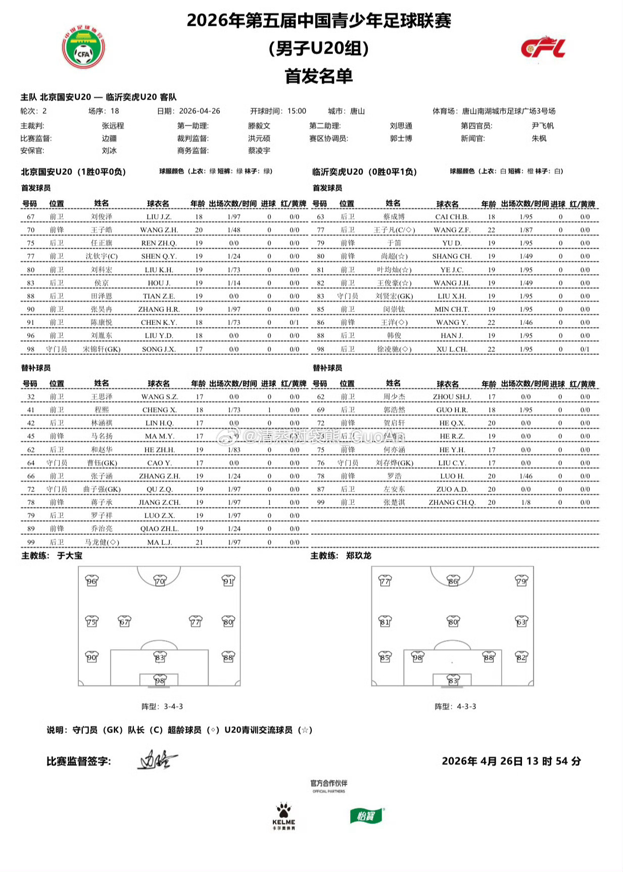 中国青少年足球联赛(男子U20组)第一阶段排位赛第2轮