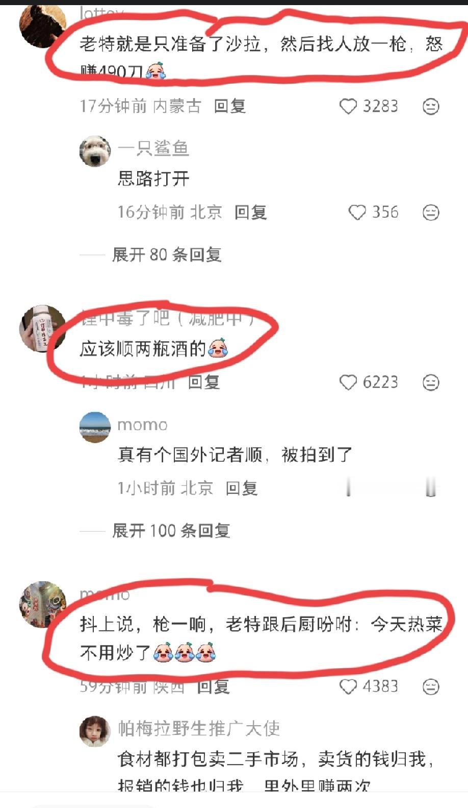 驻美记者发了一个吐槽的帖子:500美刀一人的白宫记者晚宴,就吃了一盘沙拉…… 她的帖子还不是很好笑,评论区直接让我笑翻当场。 “老特就是只准备了沙拉,然后找人放一枪,怒赚490刀”。 “抖上说,枪一响,老特跟后厨吩咐:今天热菜不用炒了”。 …… 白宫办个记者晚宴,还要记者自掏腰包,真的是闻所未闻。 这也从一个侧面验证了美国当前的财政是如何的捉襟见肘了!