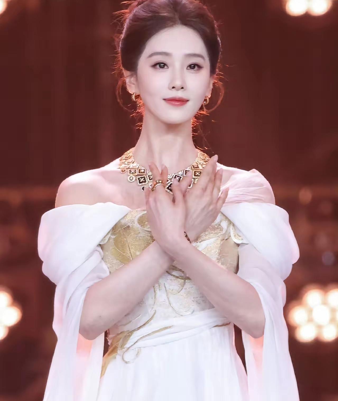 4月25日,刘诗诗在第十六届北京电影节闭幕式上,以“天坛女神”的身份亮相 ,并亲手护送“天坛奖”奖杯入场,还进行了表演。 刘诗诗身着由组委会独家定制的“天坛神鸟·星汉为裳”白色纱裙,设计灵感源自天坛祈年殿与上古神鸟图腾,尽显东方古典雍容之美。 在钢琴家郎朗与歌手黄子弘凡联袂演绎的《光影狂想曲》中,刘诗诗携光缓步登场,虔诚从容的舞台表现真是让人喜欢!