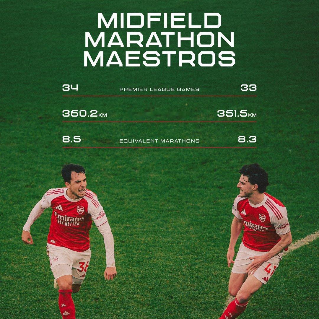📊苏比门迪本赛季的跑动距离360.2公里,而赖斯跑动距离351.5公里😮💨🏃