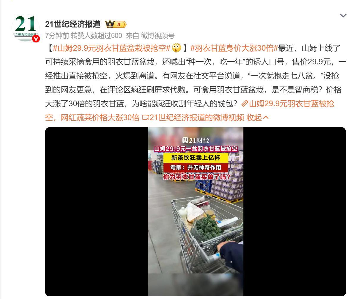🔻山姆29.9元羽衣甘蓝盆栽被抢空热点现场