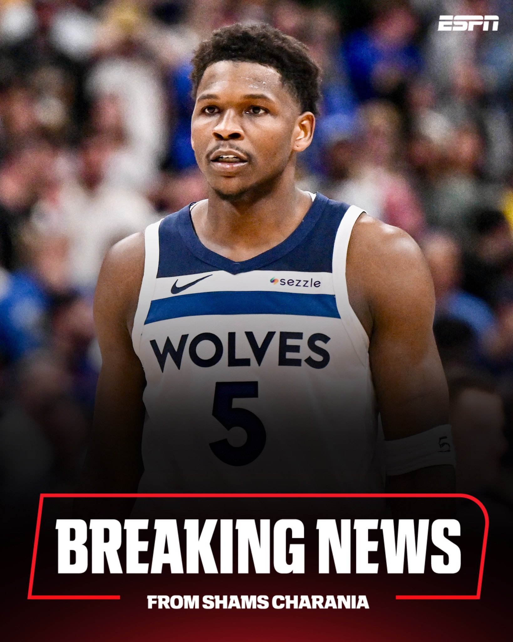 据ESPN名记Shams报道,森林狼当家球星爱德华兹左膝确诊为骨挫伤和过度伸展,但韧带没有损伤,预计将缺席数周!