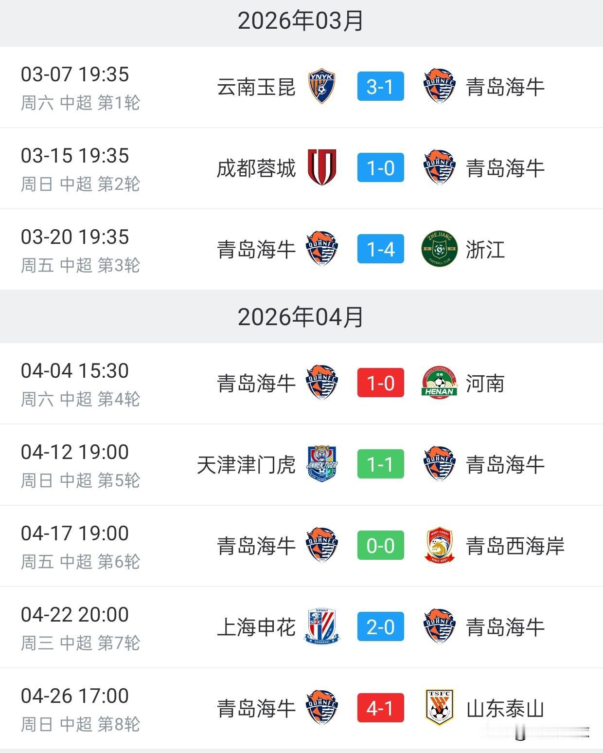 本赛季至今,青岛海牛拿的所有分数,都是在北方球队身上拿的,这些球队都是青岛海牛的兄弟球队。 1,青岛海牛1比0河南,鲁豫是一家,河南核心钟义浩是青岛人,是青岛海牛培养的。 2,青岛海牛1比1天津津门虎,上青天是一家。 3,青岛海牛0比0青岛西海岸,青岛德比,青岛西海岸是青岛海牛的小弟。 4,青岛海牛4比1山东泰山,齐鲁德比,山东泰山是青岛海牛的大哥。 其余四场比赛,青岛海牛的对手都是南方球队,青岛海牛在这些球队身上一分未得,四战全败。 云南、成都、浙江、申花四支南方球队对阵青岛海牛时,一点情面都不讲,让海牛一分也拿不到。 海牛对阵南北方球队的表现,判若两队,这种现象,值得让人深思。