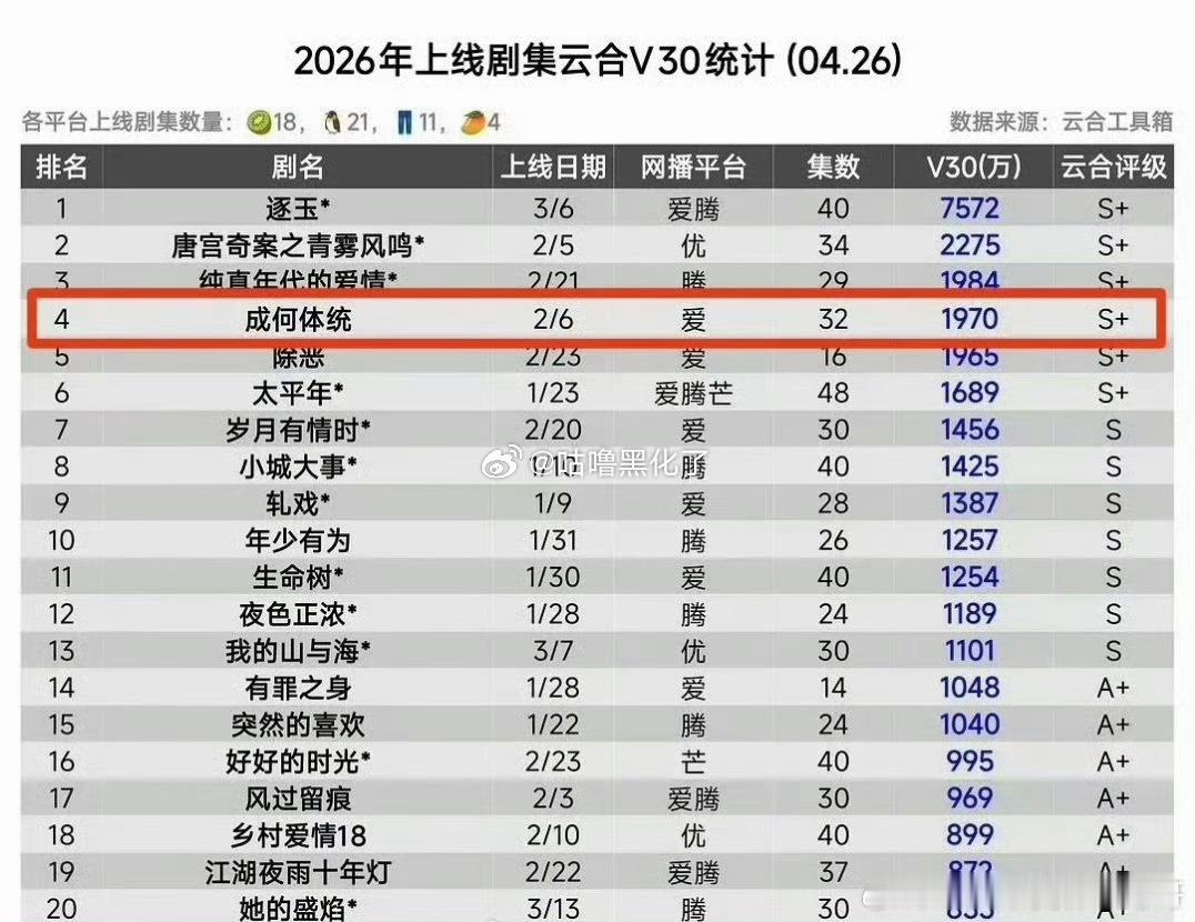 王楚然、丞磊《成何体统》很厉害啊,目前为止26年🥝云合V30独播第一诶