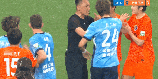 首先裁判员判罚给大连英博这个点球还是值得商榷的,你不能一碰就算犯规,一倒地就给点球,点球这样的判罚更应该谨慎一些! 其次如今有了视频回放,而且有规定除了队长其他球员不能随意和主裁判抗议,这个时候一堆人围过来,主裁判就该主动掏牌,今天裁判不出牌说到底自己估计也心虚!