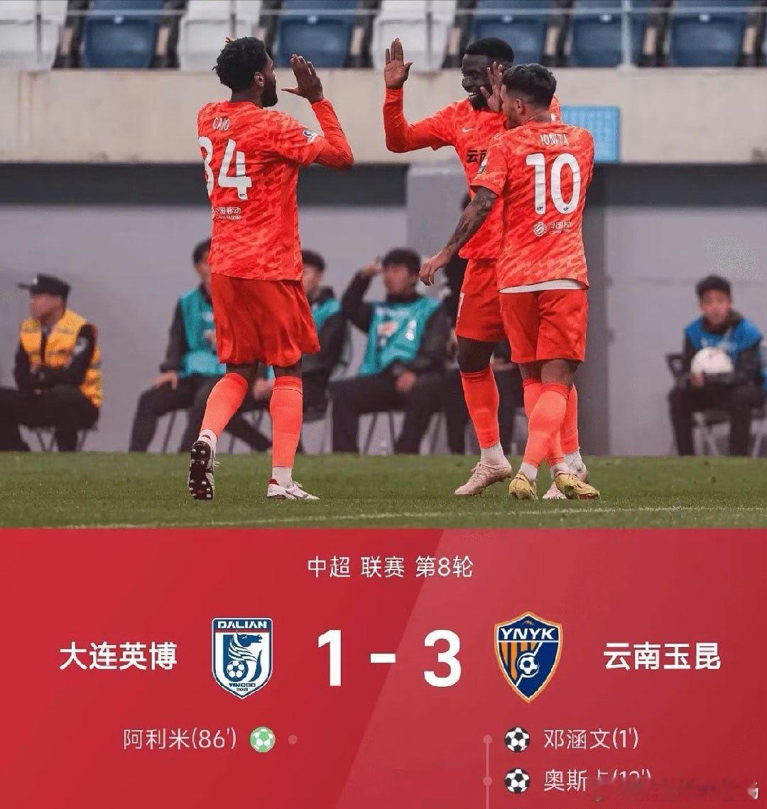 中超第8轮,云南玉昆在客场3-1击败大连英博,拿下一场酣畅淋漓的胜利,比赛进程快得让人目不暇接。