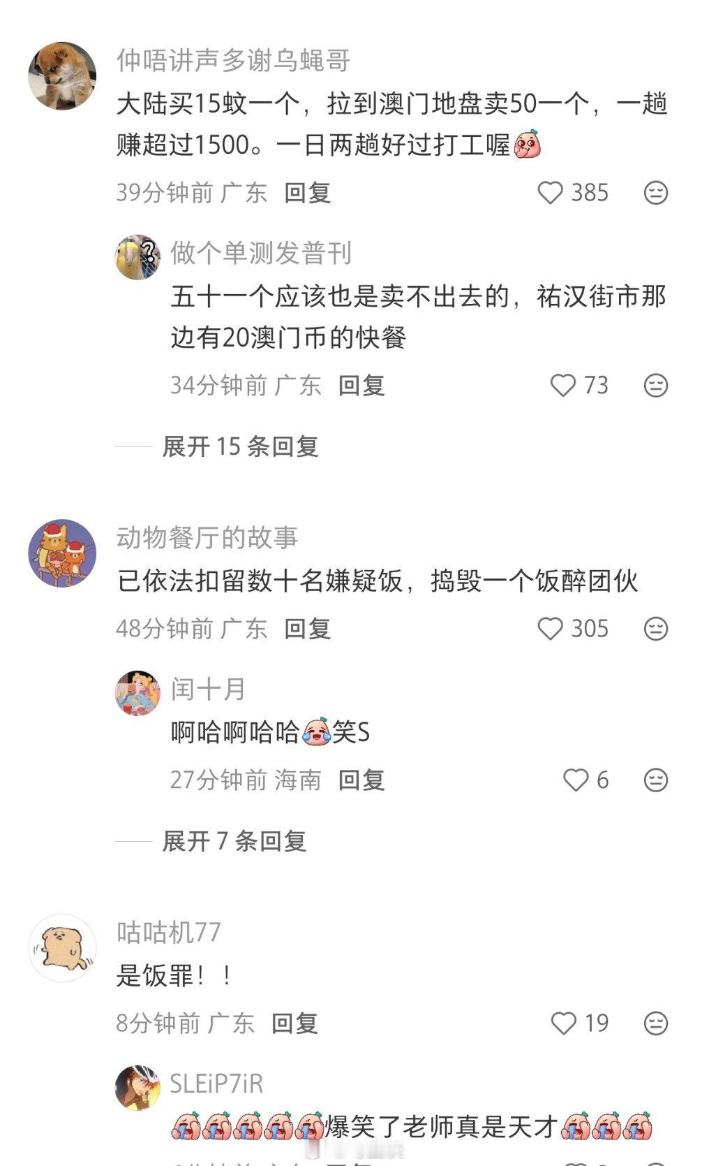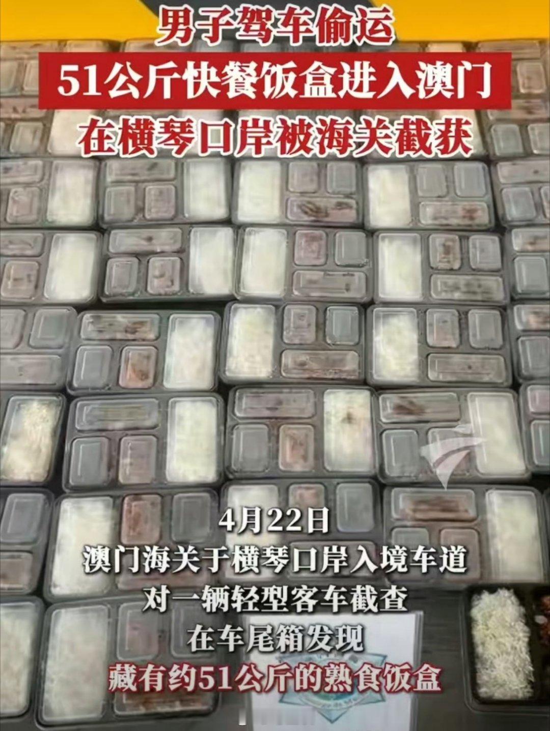 男子从内地偷运51公斤盒饭回澳门 涉嫌违反《卫生检疫及植物检疫》相关规定。网友的评论有趣,其实就是差价导致的。