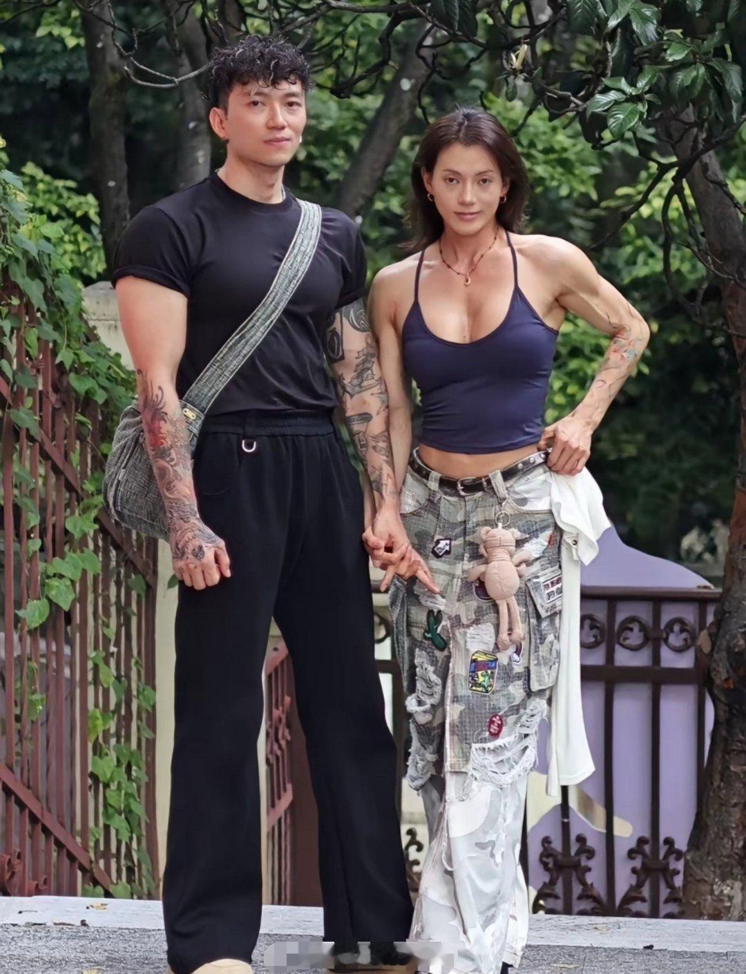 这对情侣很般配啊,女生很强壮,男生很帅哥,生个萌娃出击肯定也是健身教练级别的