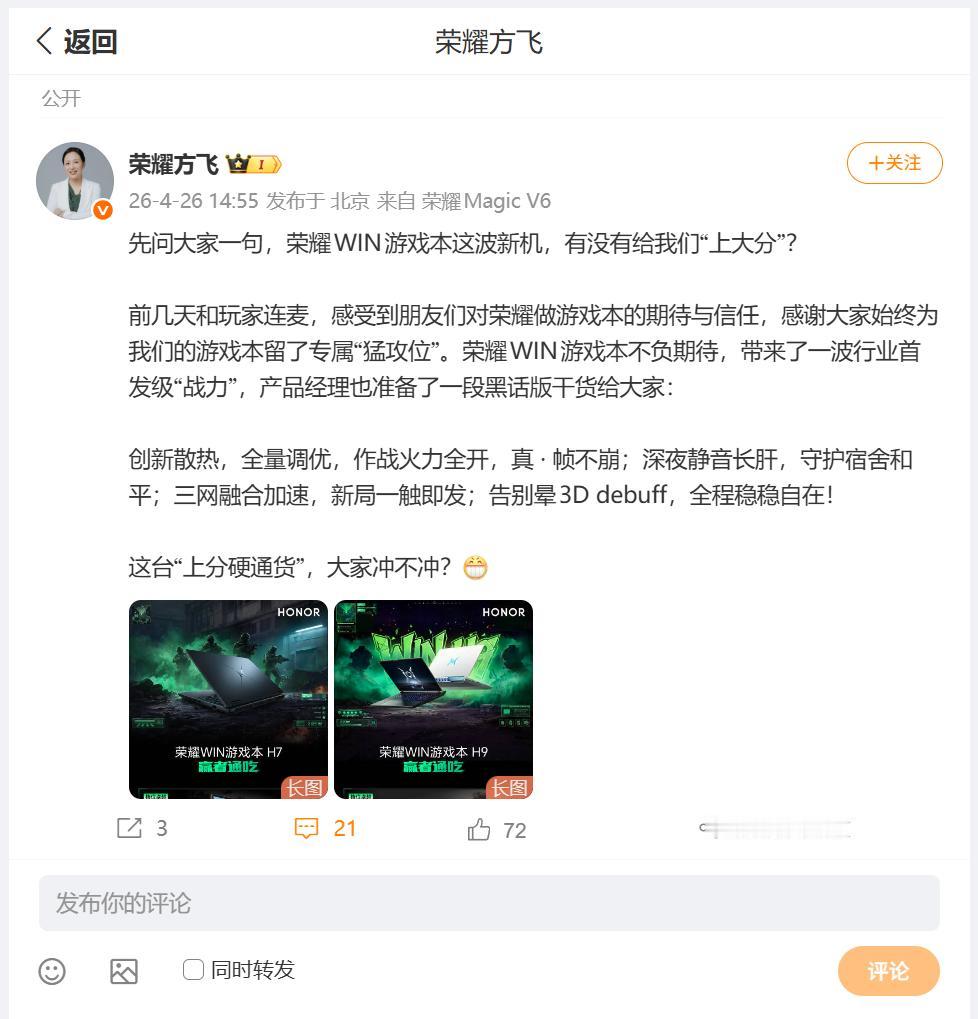 荣耀WIN游戏本什么地方最令我满意?我觉得除了硬件堆叠之外,荣耀自研的散热方案,确实能够马力全开的同时,得到较为理想的稳定性,而且噪音更低。除此之外屏幕除了提升护眼能力之外,预防晕3D的设计,确实好评爆赞