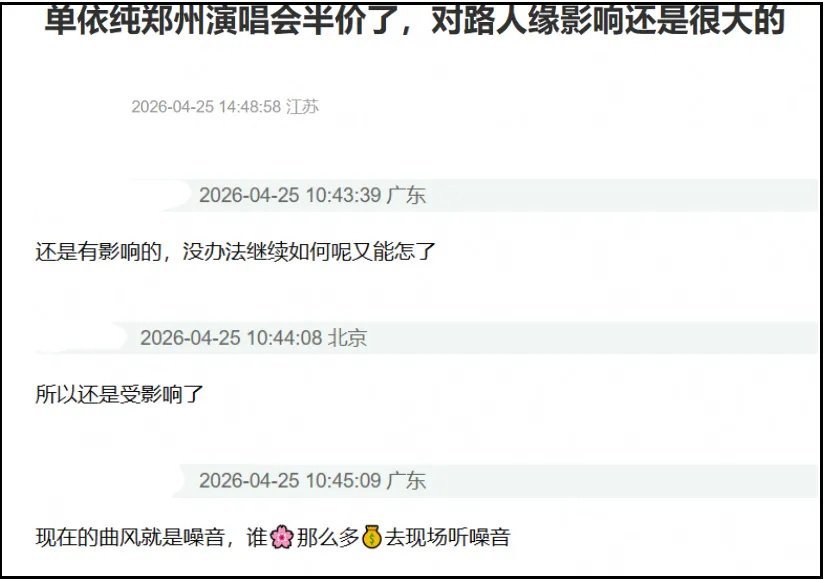 单依纯演唱会票价大跳水!原价1880打五折都卖不出去,路人缘崩了