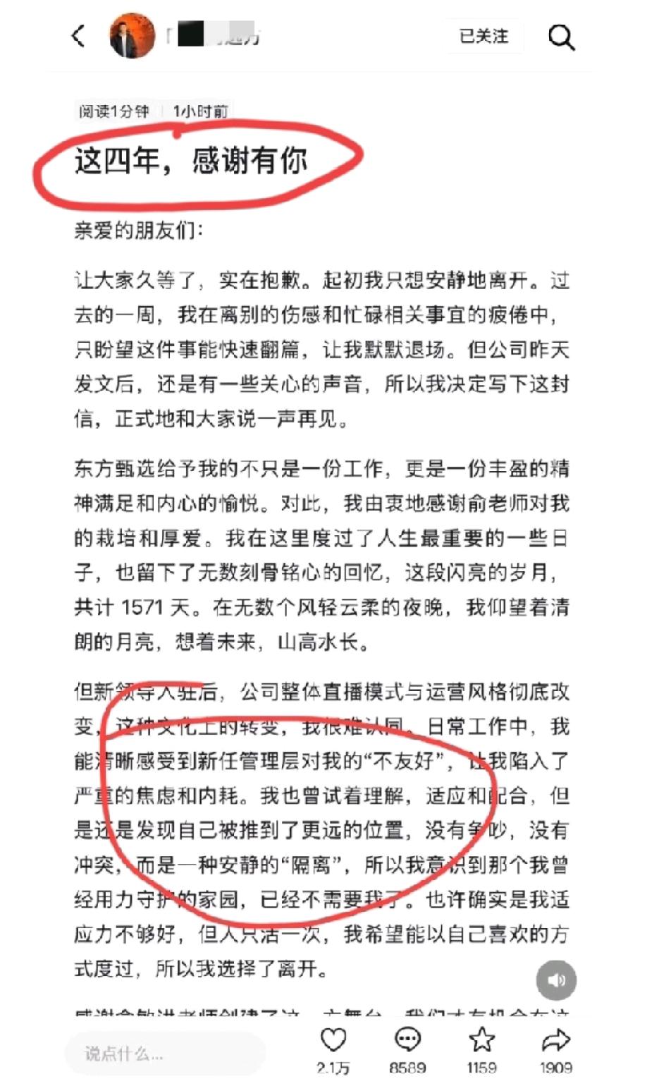 关于“东方甄选几大主播纷纷离职”这个话题,个人感觉下面这位网友的分析最精辟到位,他是看到了事情的本质:老余就是要去标签,他不喜欢优秀的主播,只喜欢打工人主播,他想要的是主播弱于平台,因为董就是前车之鉴,他沉浮商海几十年,断不会让自己在同一条河里面掉进去两次! 孝庄太后对康熙曾经说过这么一句话:“你不杀大臣可以,但不能不换大臣,天下之大,哪里都有人才”。老余也是深得其精髓! 大家觉得是不是这个道理?