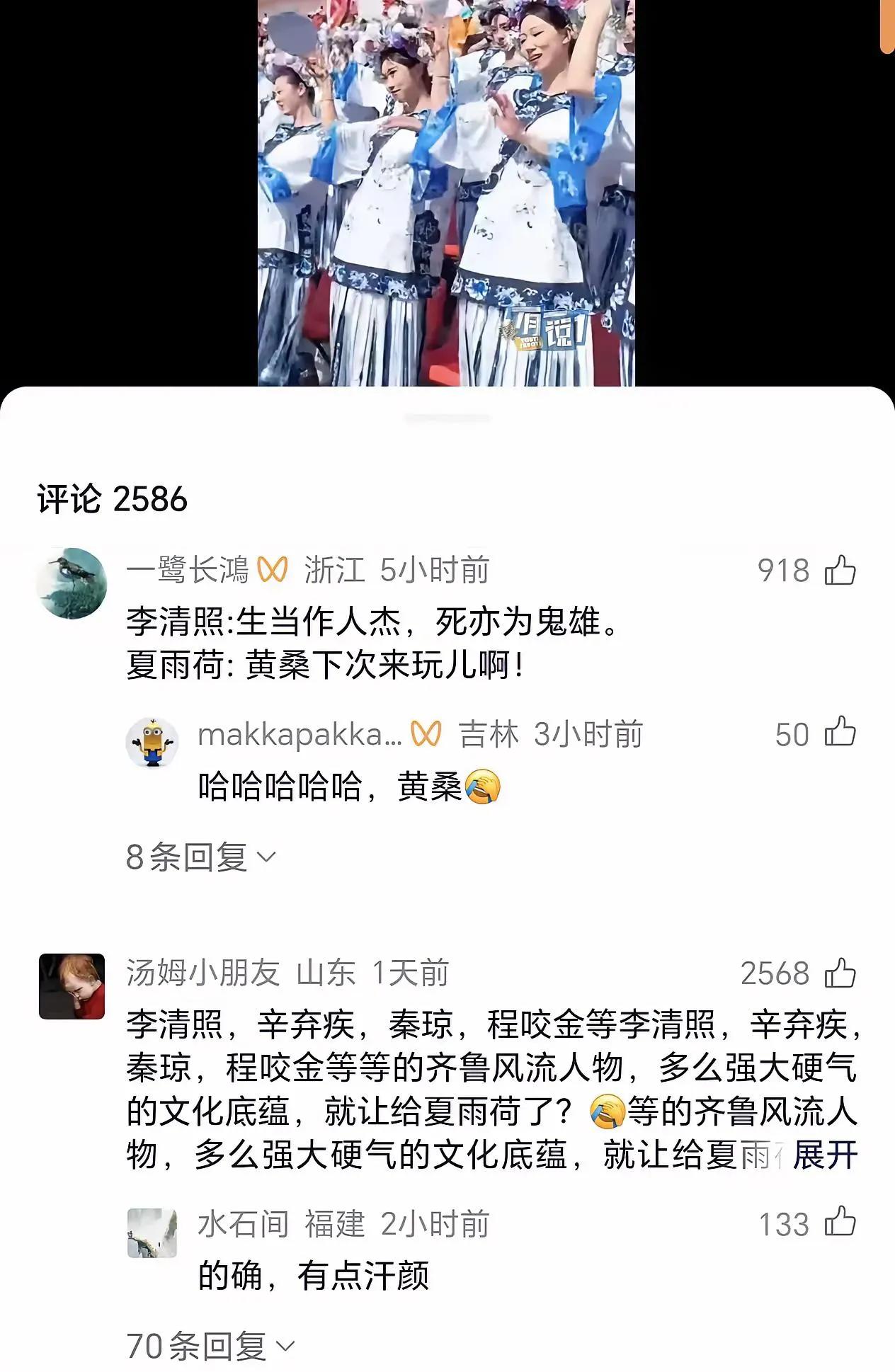 济南文旅负责人可以撤职了 苏超、川超遍地爆火,各地文旅借体育强势出圈。 唯独山东手握足球底蕴,济南反倒整出满清夏雨荷尬操作。 然后下边的留言爆炸了! 文化大省只剩下一声叹息! 关键特么的,夏雨荷连个真人都算不上,甚至电视剧里都没正经露过面。更讽刺的是文旅集团花大力气把虚构满清符号做成12米高永久花灯,捧为“城市名片”,对本土历史文化视而不见 。 无视本土血泪历史,浪费齐鲁千年文脉,文旅差距一眼可见。 山东文旅能不能换点有文化的领导???