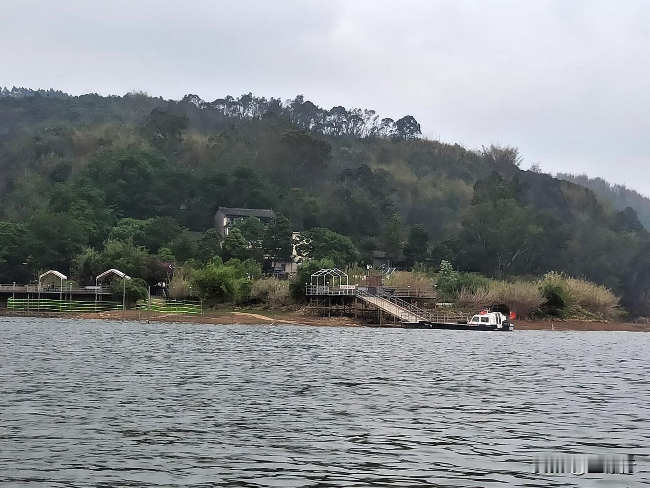 去弥勒大山深处的红河谷泡温泉,打的经山路十八弯到一座水库,然后坐船过去。 回程时