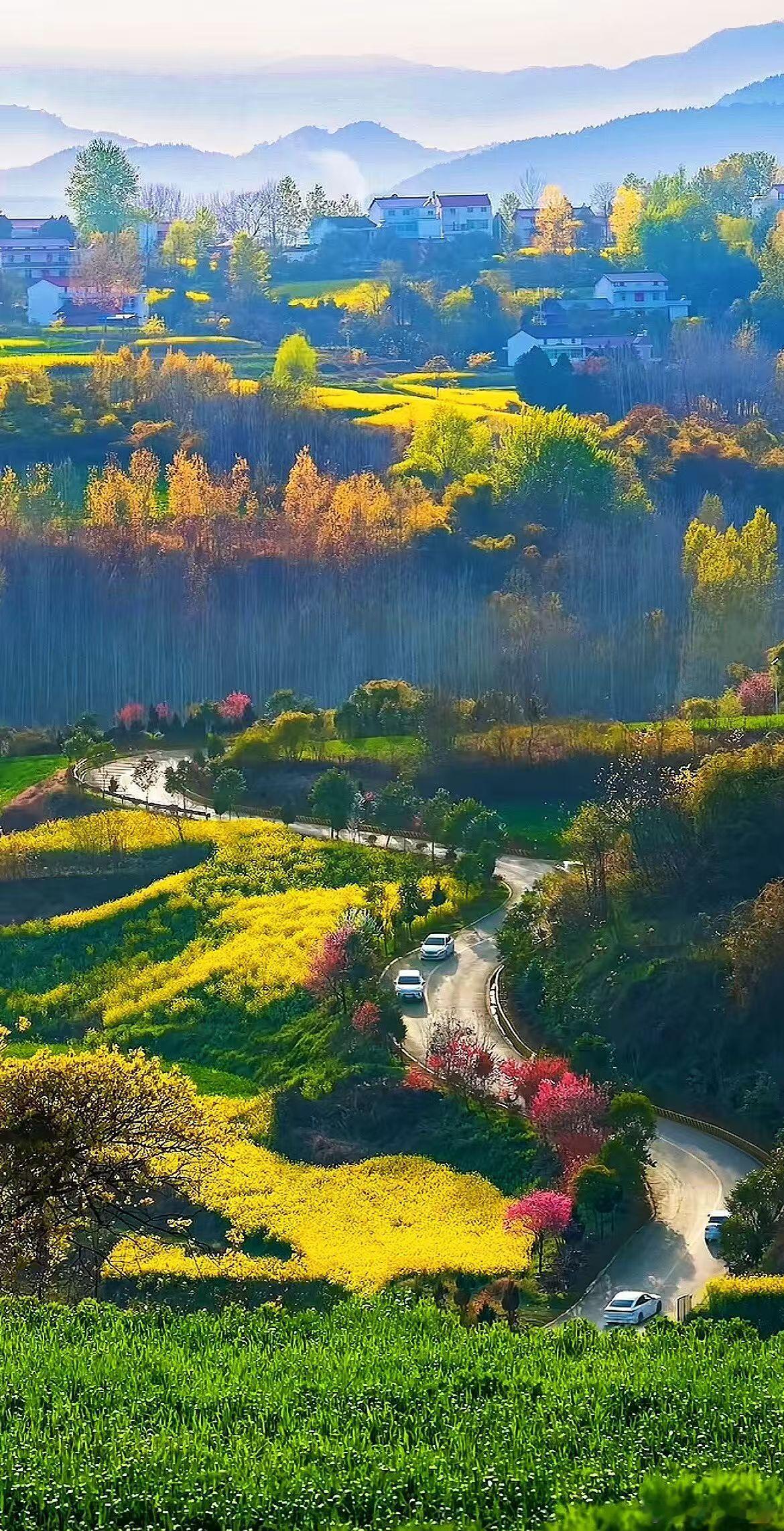 油菜花不想成为山,它只管在此时此地,用全部的黄宣告春天。而山在远处用晨雾写信,寄给所有低头走路的人。