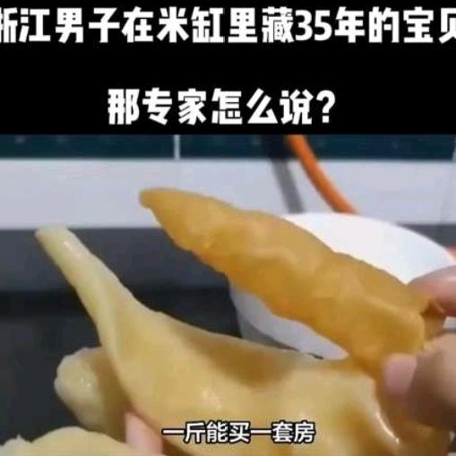 一斤能买一套房?浙江男子在米缸里藏35年的宝贝,专家怎么说? 谁能想到,平平无奇的米缸里,竟能藏着“一套房”?浙江舟山渔民林德华,35年前随手塞进米缸的一块“干胶片”,如今竟被开出320万天价,折算下来一斤真能换一套市中心学区房!消息一出,全网炸锅,这不起眼的宝贝到底啥来头?专家的话更耐人寻味。 故事要从1981年说起。当时30出头的林德华出海捕鱼,意外收获一条90多斤的野生毛鲿鱼。分鱼时,他盯上了足球大的鱼鳔,洗净晒干后随手塞进米缸——老渔民都知道,米缸干燥防霉,是藏好东西的“天然保险柜”。这一放,就是35年。 如今再取出,这块毛鲿鱼胶金光灿灿、纹理清晰,足足400克,保存完好无霉蛀。圈内人一眼认出:这是中国五大顶级鱼胶之一的毛鲿胶,野生毛鲿鱼早已功能性灭绝,2016年被列为国家一级保护动物,有钱也买不到,完全是“绝版孤品”。 “越老越值钱,年份就是金价!”行内人透露,鱼胶放够10年算“小涨”,20年“涨停”,30年直接“翻倍暴涨”。35年老胶的羟脯氨酸含量比新胶高28%,营养和口感都达到巅峰,成了收藏家疯抢的硬通货。 那专家怎么说?浙江海洋大学赵盛龙教授直言:百万身价,三分靠营养,七分靠稀缺!鱼胶80%是胶原蛋白,营养价值虽高,但绝非“神药”,真正值钱的是“再也捕不到”的绝版属性,是海洋生态消逝的见证。 更戳心的是,老林至今没卖。他说:“这不是钱,是我一辈子靠海吃海的念想。”米缸藏的哪里是鱼胶,是35年的时光,是老渔民对大海的敬畏与深情! 网友热议:有人说“时来运转,天上掉馅饼”,有人说“这是大海的馈赠,更是岁月的沉淀”。你觉得,这块米缸里的老胶,值这个价吗?你家有没有藏着老物件?评论区聊聊!