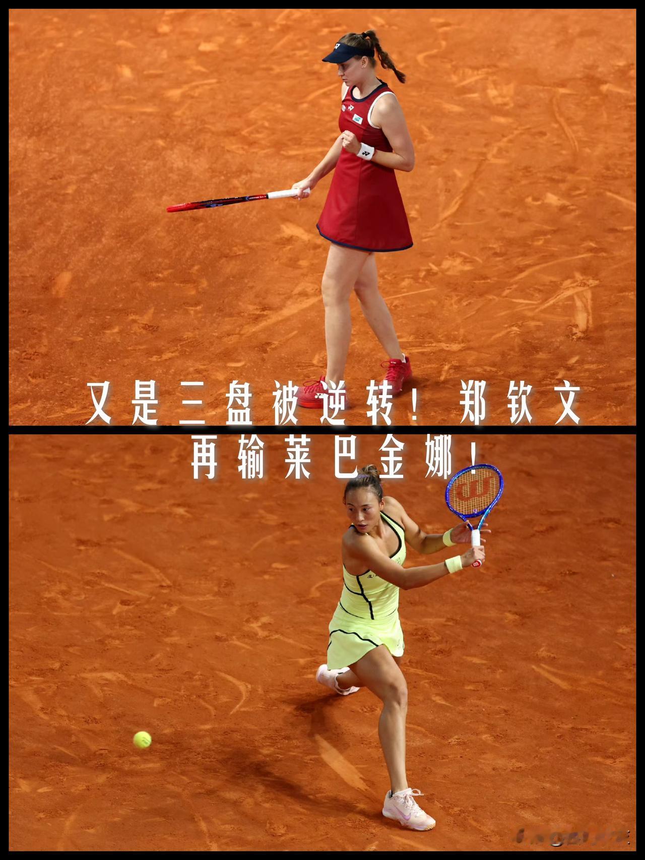 【马德里复制多哈!又是三盘被逆转!郑钦文再输莱巴金娜!】 WTA马德里红土1000赛第三轮焦点战,郑钦文对莱巴金娜的比赛已经结束。 这场比赛像极了多哈站两人之间那场交手,郑钦文以6-4先下一盘,莱巴金娜以6-4、6-3连扳回两盘。 最终,2号种子莱巴金娜以2-1逆转32号种子郑钦文晋级十六强。 虽然有些可惜!毕竟莱巴金娜处于巅峰期,现在跟莱巴金娜打,没有谁说一定会赢!