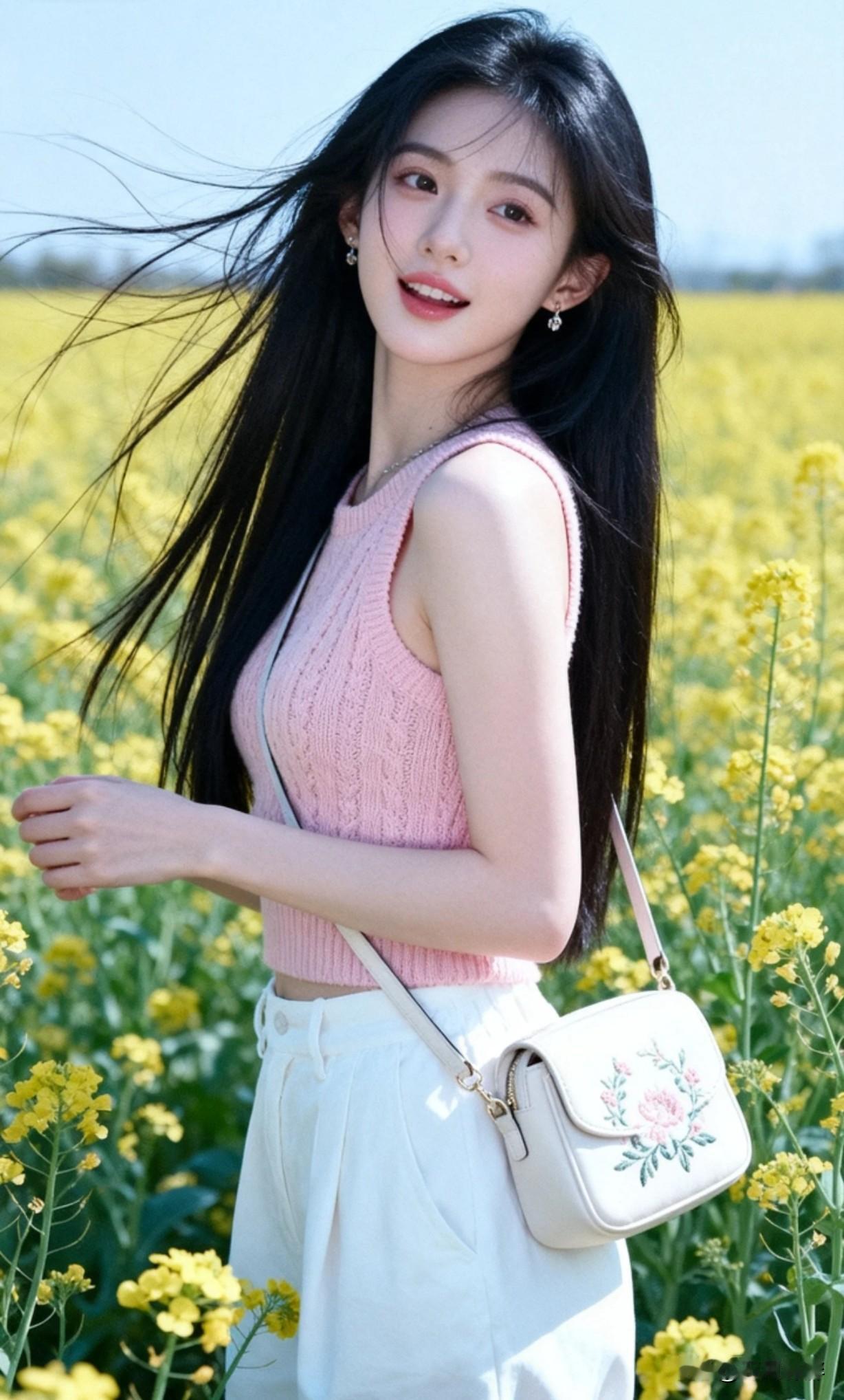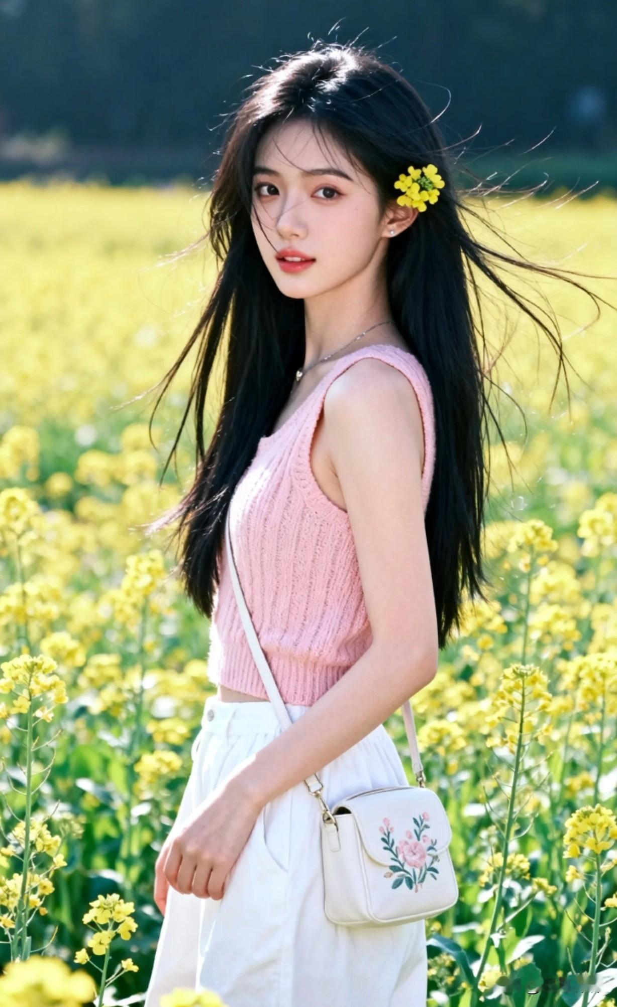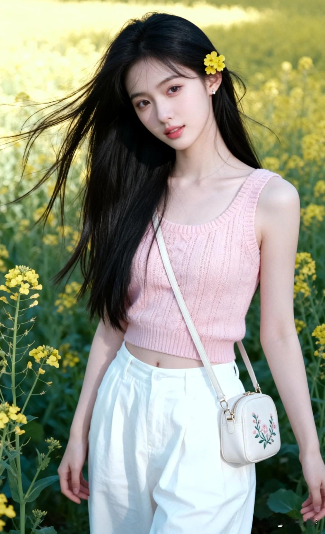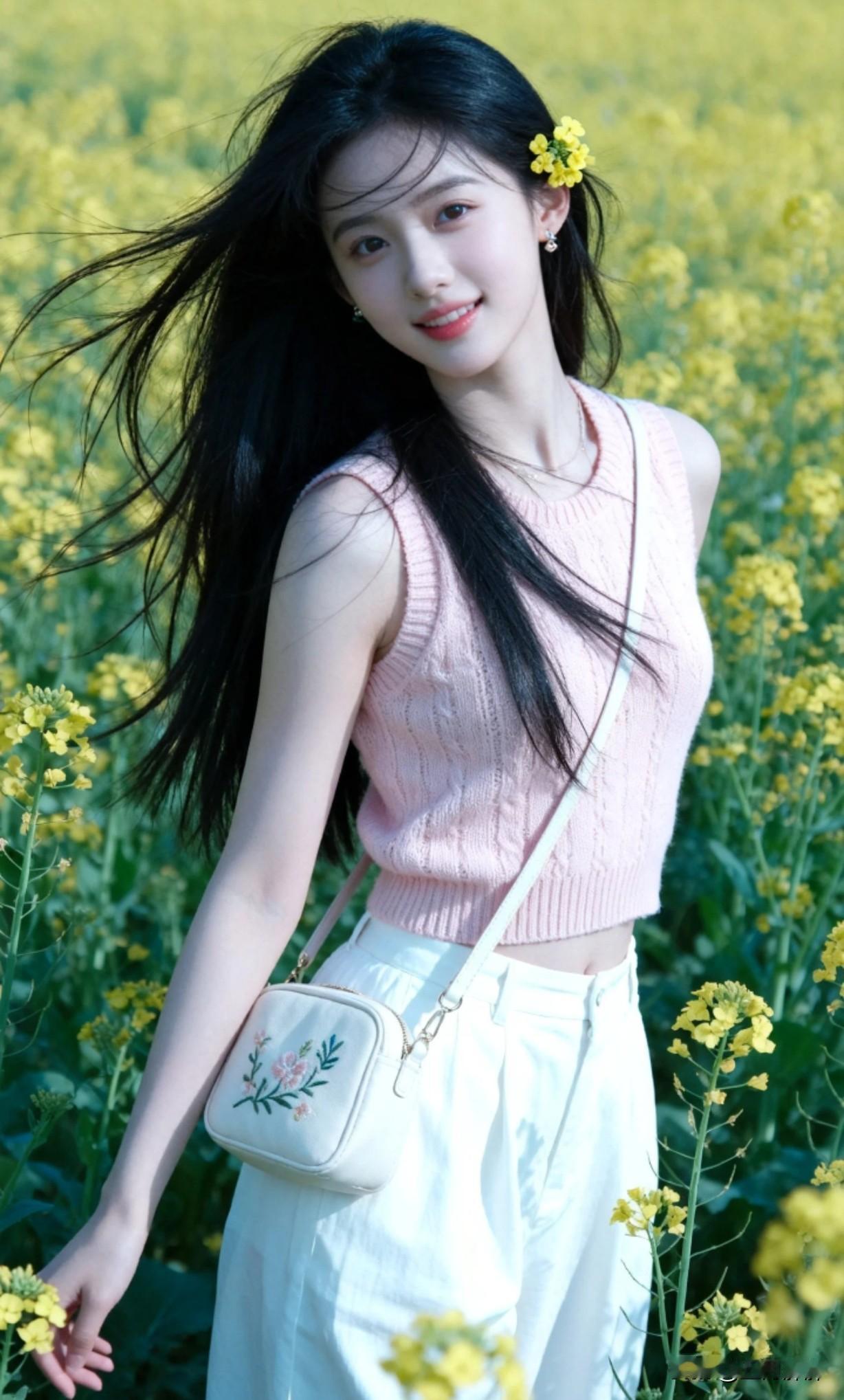 阳光下的少女,花海中漫步,青春洋溢!🌸🌼🌻她这样好穿搭,好显年轻呀。!