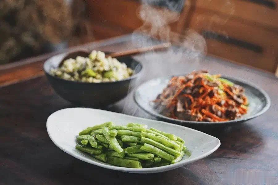 那时候我年纪尚小,个子不高,趴在灶台边沿才勉强露出双眼。奶奶常递给我一把碧绿的豆角,让我坐在厨房门口的小竹凳上慢慢择捡。午后暖阳穿过木格窗,斜斜裁下一道光柱,无数细碎尘埃在光影里缓缓浮沉,岁月悠悠,安静又绵长。我一根一根细细掰折,撕掉那层半透明、柔韧发硬的老筋,随手丢进脚边的筲箕,落下轻轻的扑扑声响。奶奶素来话少,只顾低头忙碌,偶尔见我摘得菜叶豆子散落一地,便默默伸手,替我一一收拢归整。