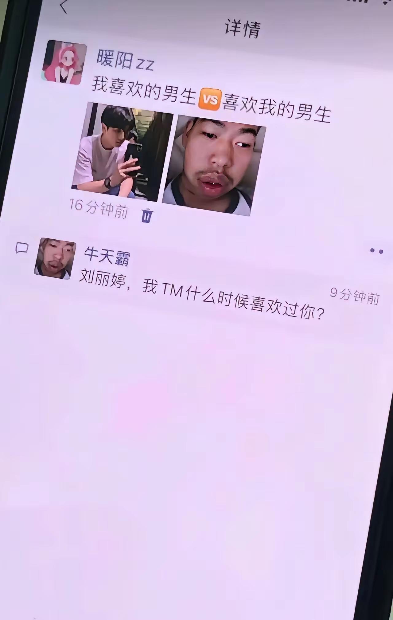 牛天霸:你没反应过来,刘丽婷说的她喜欢的男生其实是你!