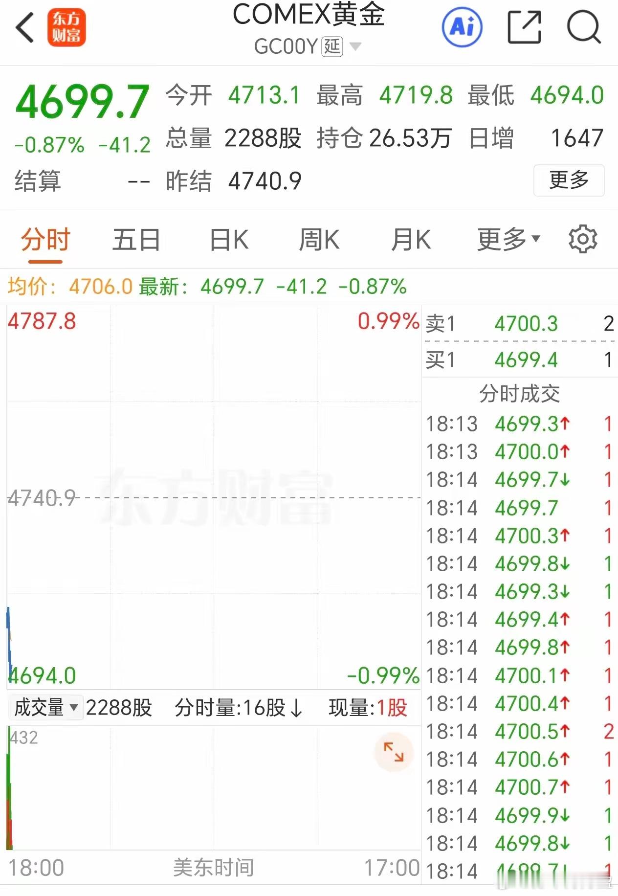 黄金再次跌破4700美元!