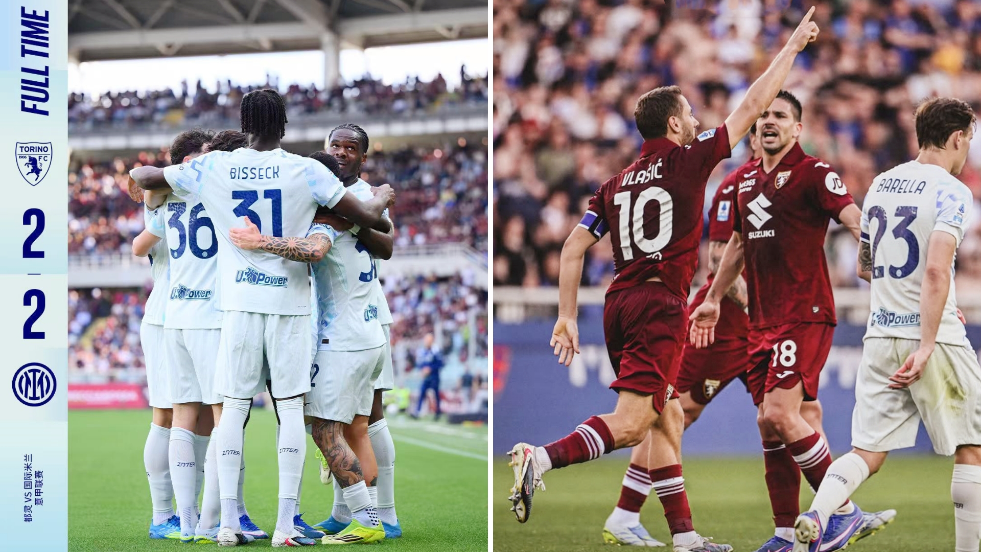 意甲:国米连丢2球2-2被都灵逼平,剩4轮10分领跑。 迪马尔科助攻双响,都灵连追两球将比分逼平。
