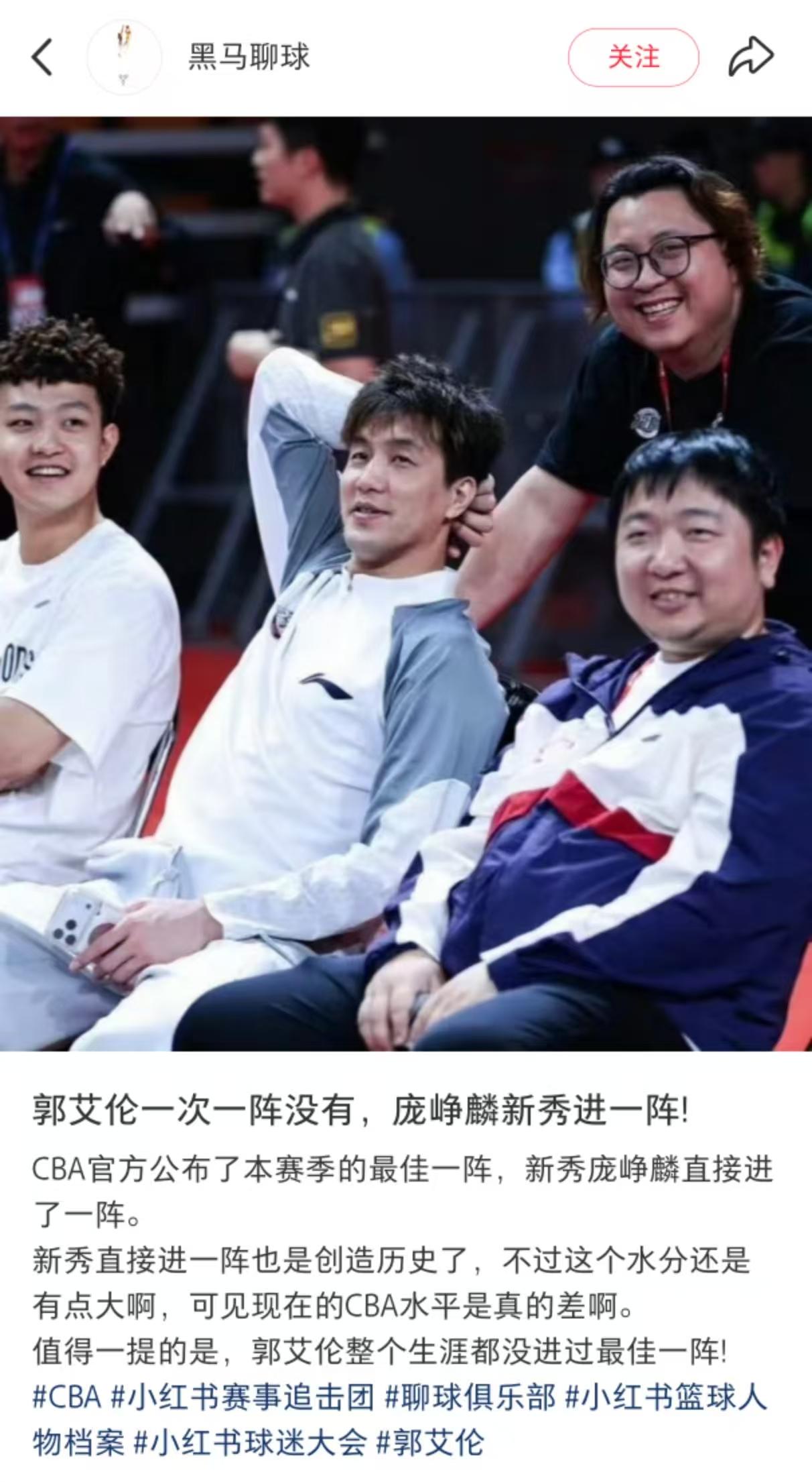媒体人质疑庞峥麟入选CBA常规赛最佳一阵!媒体人称强如郭艾伦都没有进入过最佳一阵,不明白庞峥麟一个倒数第二球队的球员为什么入选最佳一阵。 郭艾伦在CBA是不受待见的人物,别看入选过亚洲最佳阵容就是没办法在CBA联赛拿任何奖项,哪怕连续四个赛季得分20+也没入选过最佳一阵,更别提MVP了。 这次庞峥麟入选个人数据上已经够资格,就是球队成绩太差,就像林葳当年一样明明是国内得分王,却拿不到MVP和无法入选最佳一阵,就是因为球队排名倒数。