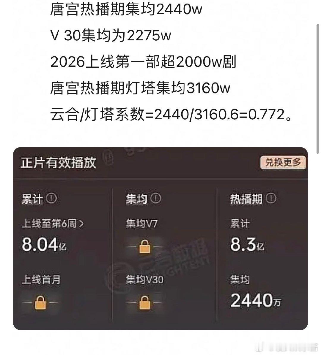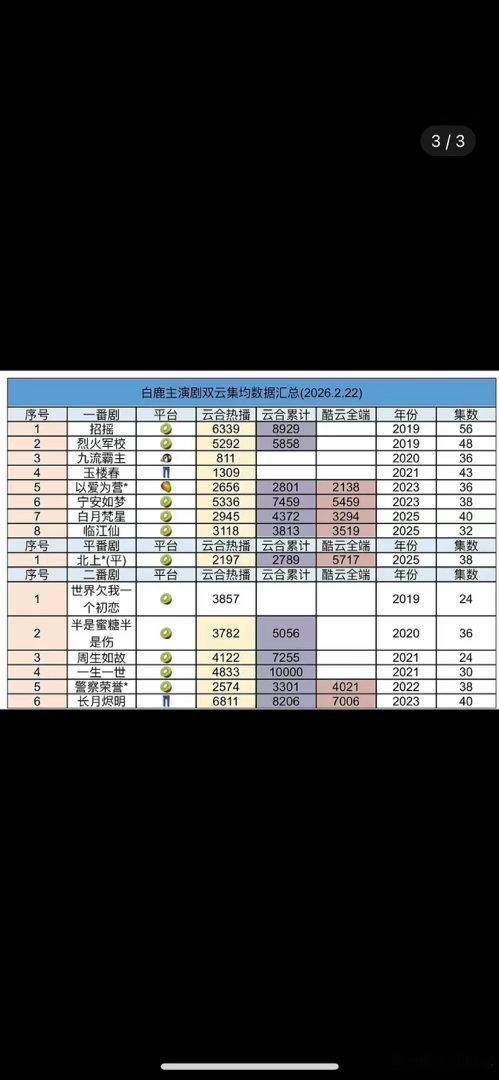 白鹿的底盘是不是2000+,好几部剧都是集均2000w左右