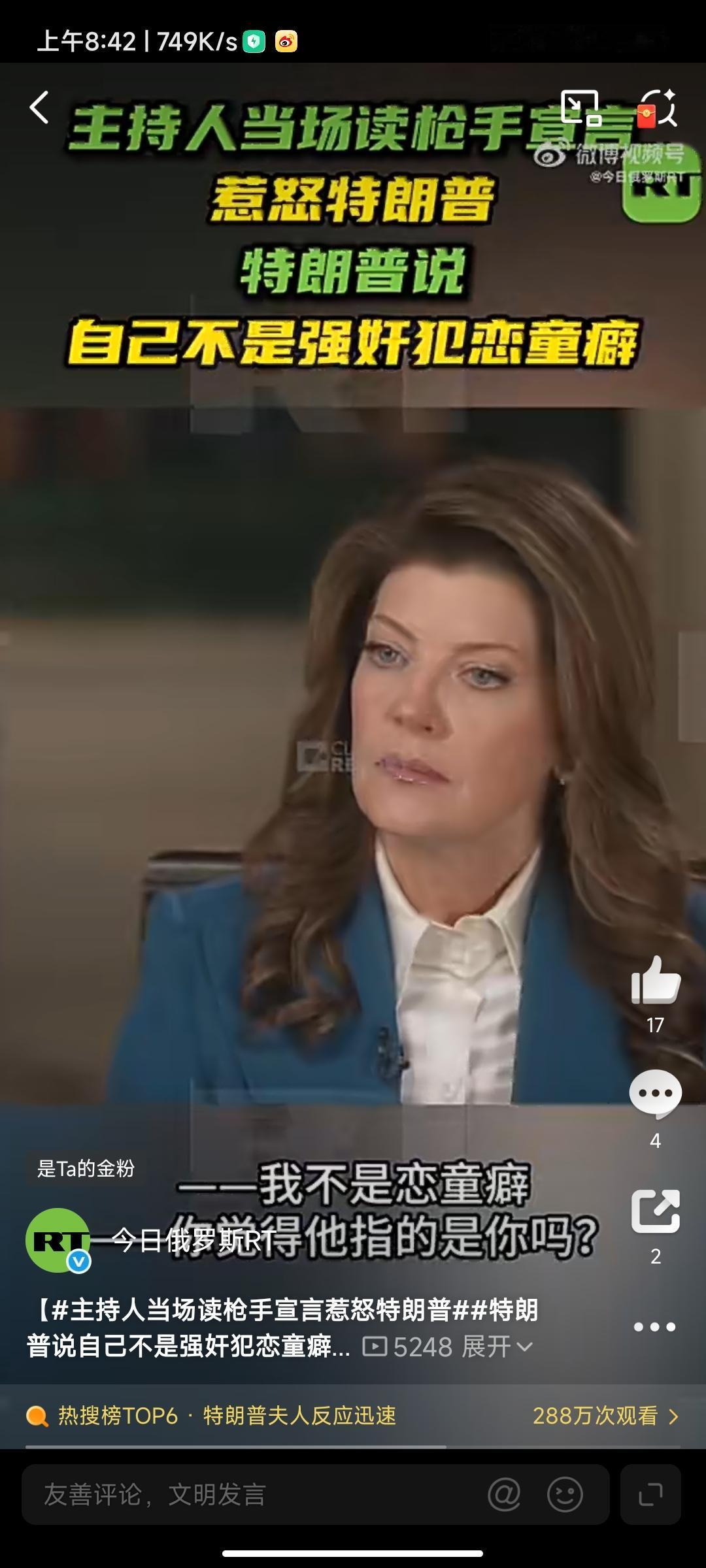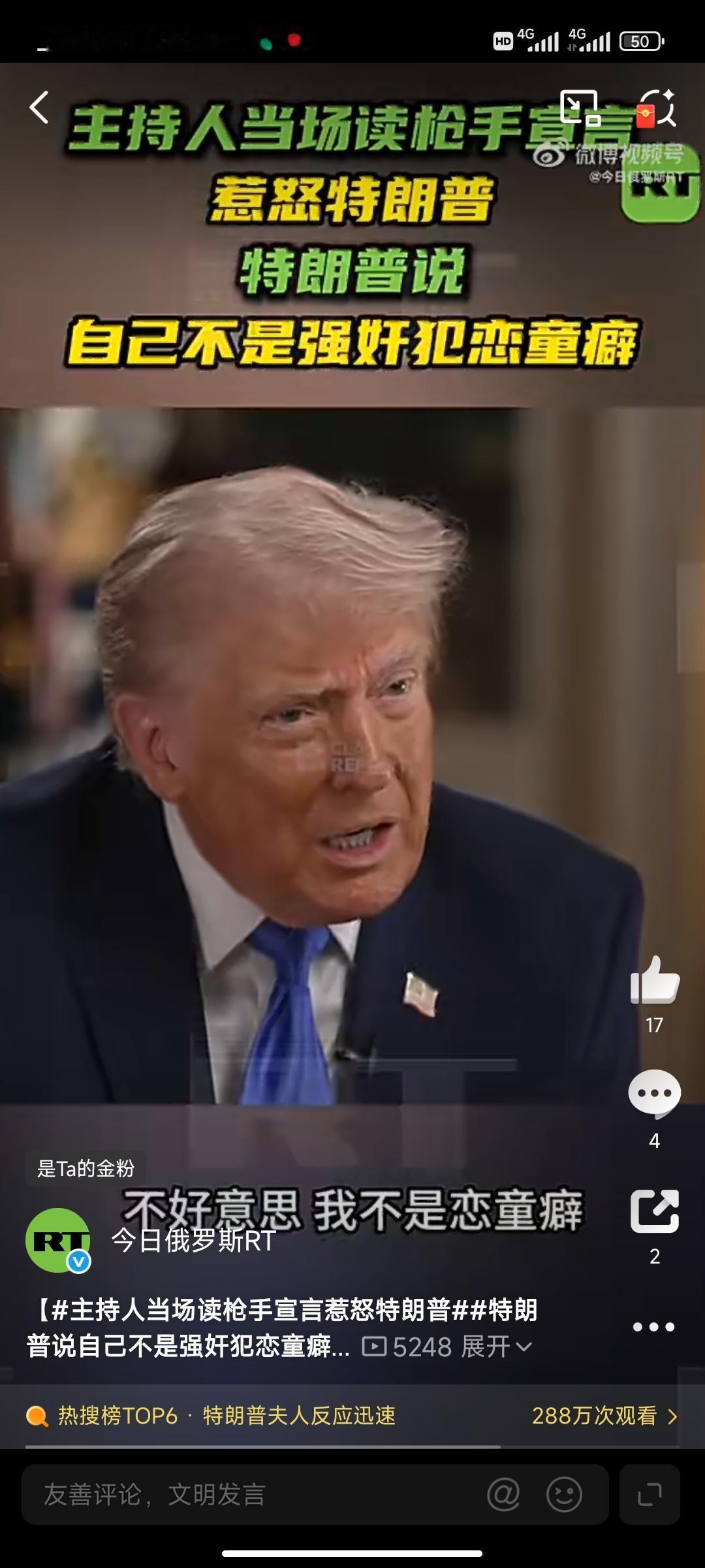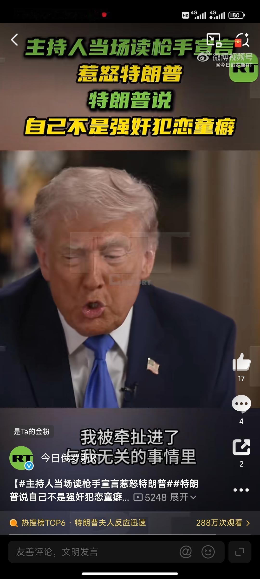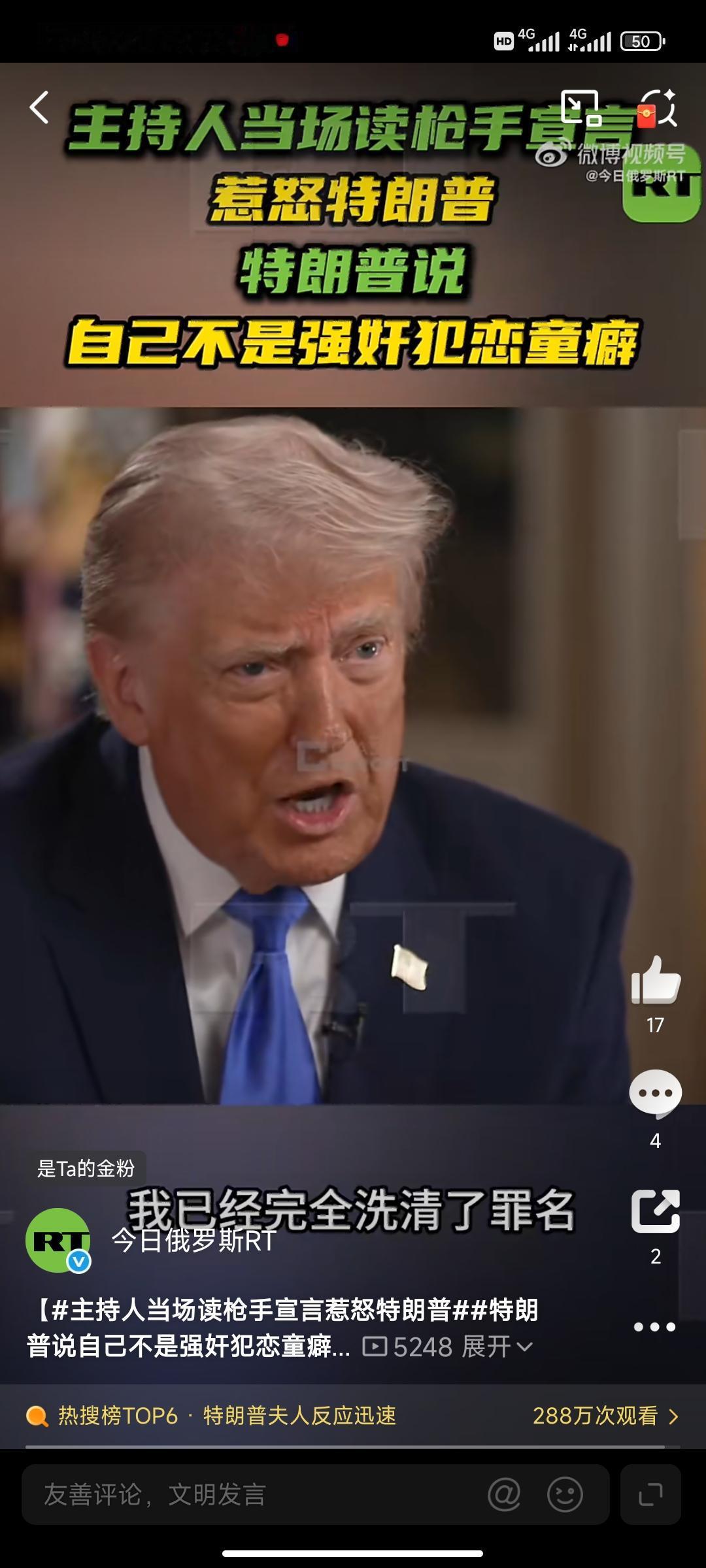 暗杀特朗普的枪手宣言: “我再也不愿允许一个恋童癖、强奸犯和叛徒用他的罪行玷污我的双手” 这是昨天暗杀特朗普未遂的枪手写的宣言。 很明显,这就是他的暗杀动机。 然而,特朗普全部否定了上述罪行! 当地时间4月26日,惊魂未定的美国总统特朗普就25日晚白宫记者晚宴枪击事件接受美国哥伦比亚广播公司(CBS)《60分钟》节目采访。 采访中,主持人同着特朗普,公开宣读了这位暗杀特朗普枪手的宣言: “宣言”中,其中一段是“我再也不愿允许一个恋童癖、强奸犯和叛徒用他的罪行玷污我的双手”。 特朗普立即显示出不满和愤怒,他怒道: “我一直在等你读到那段话,因为我知道你会读,因为,你们是群糟糕的人。” 为了为自己辩护,他就枪手的这段宣言立即进行了否定:“我不是强奸犯,我没有强奸任何人。我不是恋童癖。你从某个精神病那里读到了那些废话。我被牵扯进了与我无关的事情里。我已经完全洗清了罪名。” 此前的各项事件,都是有物证或人证的,特朗普称自己已经洗清了罪名,究竟是洗清还是洗白,估计,他卸任后,他的对手和美国的法律不会饶恕罪犯!