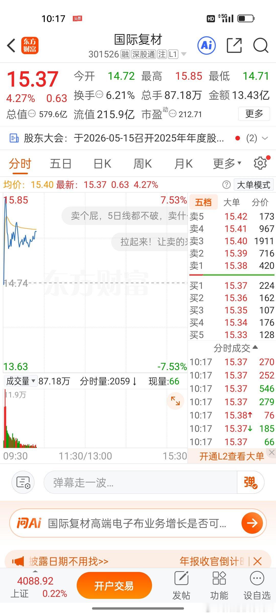 国际复材稳稳走强,趋势彻底打开,翻倍行情在路上,强势拉满不言顶🚀