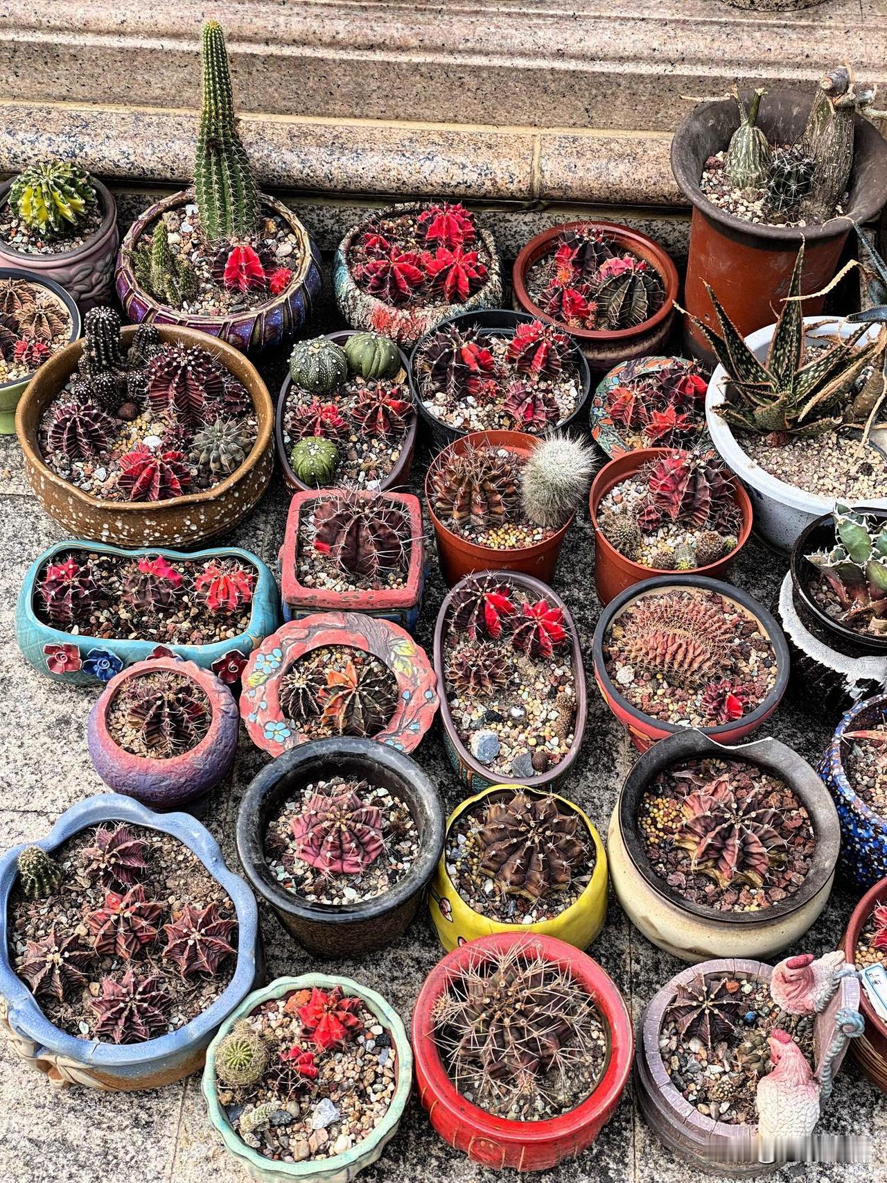 今天有些发愁,听说明天要下大雨,花园里的几百盆仙人球,舍不得淋雨就要搬回花房,几天前下雨的时候,有30多盆仙人球不小心淋湿了,结果还是出问题了,就是有一盆仙人球水喝多了,球裂开了囗子。 反正还有一天时间,好好规划一下,先搬毛花柱,再搬云球,下午没力气了就搬小球,希望我的仙人球可以安全度过雨季。