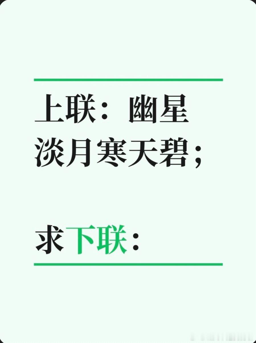 上联:幽星淡月寒天碧;求下联:求下联