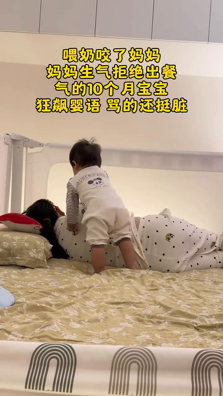 喂奶咬了妈妈,妈妈生气拒绝出餐。 气的10个月宝宝狂飙婴语骂的还挺脏。
