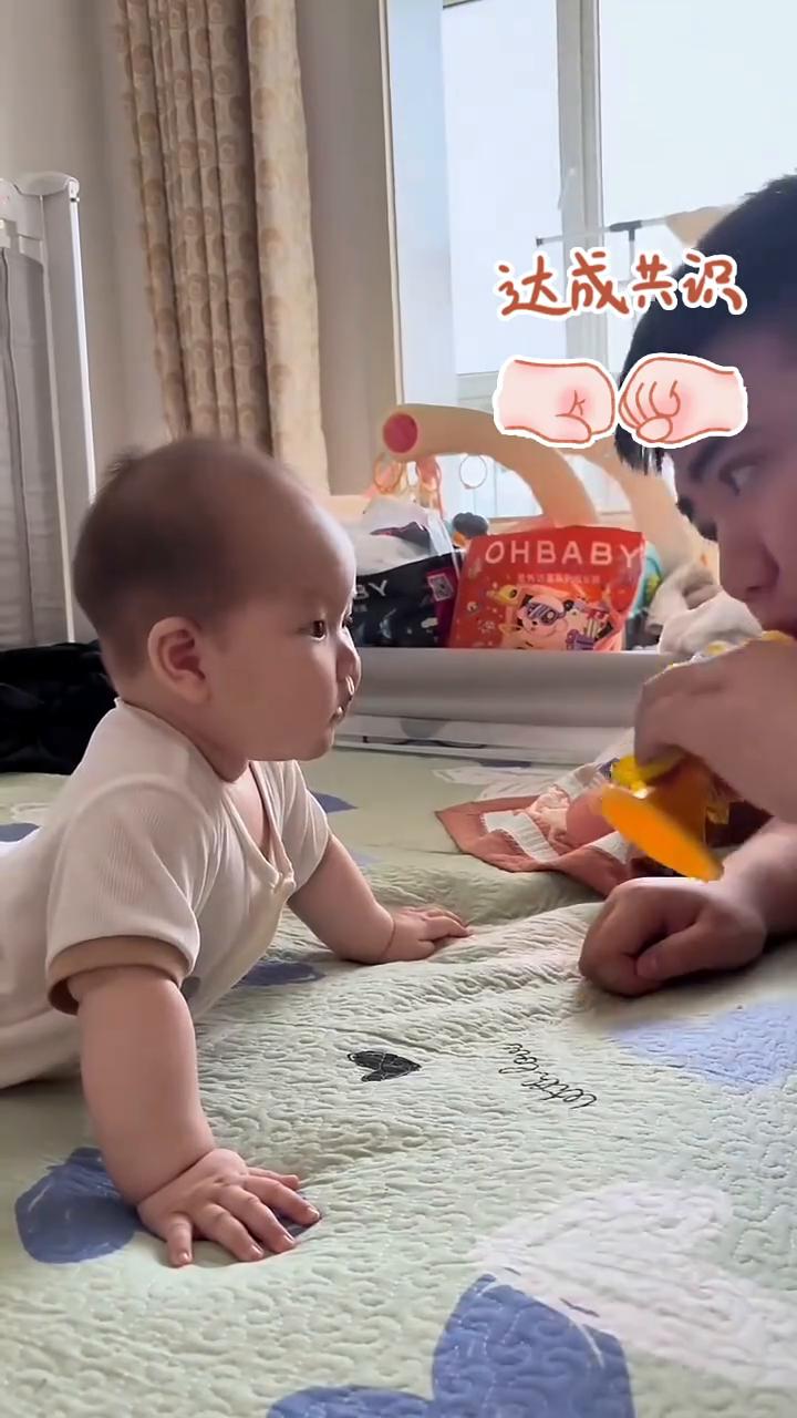 不到一岁的萌娃完美配合爸爸指令,不光听得懂口令动作还十分标准。 来源:别哼哼(禾禾宝)新华社。 听爸爸口令,爸爸一吹立马支起来。对,爸爸再一吹立马松手落下来。听口令,超级可爱。不但知道趴下,还知道把手抬起来。我滴个天哪,这孩子太聪明了。