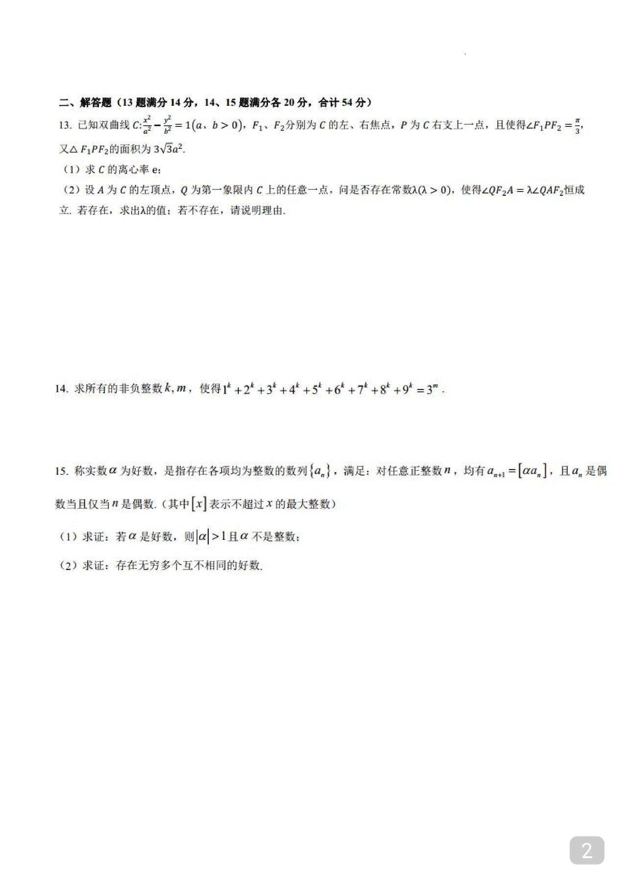 高中数学竞赛 校内选拔试题 含答案 有参考价值