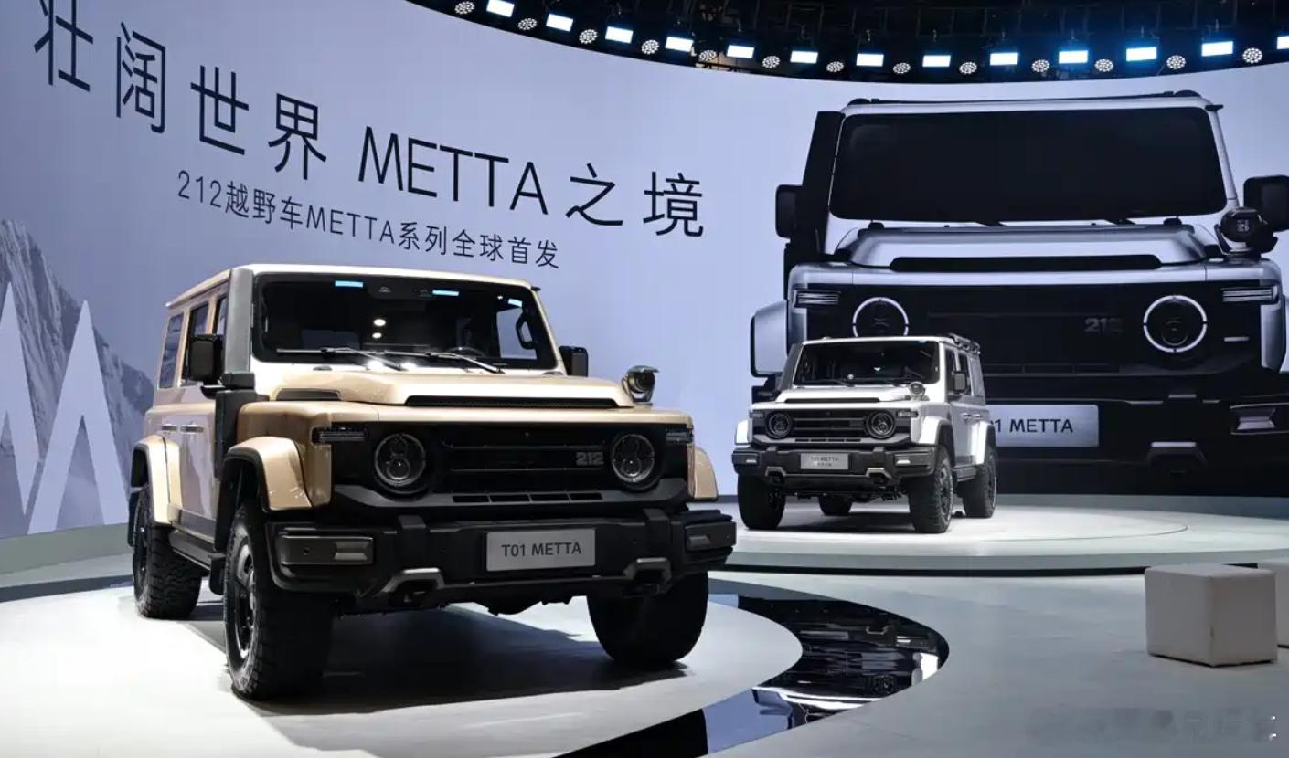 比起发布新车,本次北京车展,212品牌做了件更重要的事情:它推出了首个越野生态系列METTA。首款车型T01 METTA同步上市,基础版18.99万元,巴丹吉林版21.99万元。在我看来,一个拥有六十年历史、从军车和国民越野车起步的品牌,正在从“卖一辆能越野的车”转向“卖一套完整的生活方式”。先看新车。基础版底盘采用的是越野老炮最信赖的前后整体硬桥加大梁结构,配合前后电子差速锁和分时四驱,这些是穿越非铺装路面的硬实力保障。巴丹吉林版则是车身升高1.5英寸,配备科曼可调氮气减震、33英寸百路驰KO3全地形轮胎、原厂高位涉水喉等配置,现在出厂就给齐,做到了合法合规,并免去备案和年检的烦恼。与京东汽车的全面战略合作同样是务实之举。212在京东APP上线官方旗舰店,简化了购车流程;未来还将对接京东养车在全国300多个城市、4000多家门店的服务网络,提供从买车、养护到用车的全生命周期保障。可以看出,212不再满足于只做一款让人怀念的经典车型,而是要用METTA这个生态品牌,重新参与到当下越野消费的全链条竞争中。212 t01 metta全球首发2026北京车展
