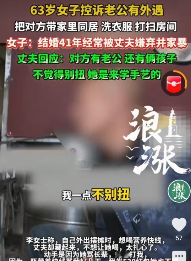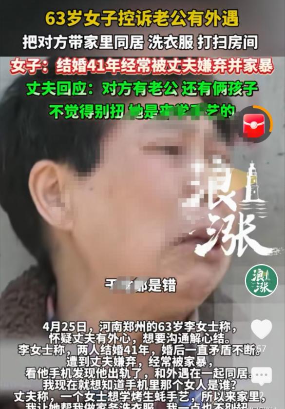 丈夫带女人回家都不背人了!河南,李女士已经63岁了,丈夫还嫌弃她不够漂亮,竟直接带回家一个女人,这女人不仅一点不害臊,还一点都没把李女士放眼里,在家给李女士的老公洗衣做饭收拾屋子,俨然一副女主人的模样,李女士觉得自己在这个家反而像个外人。她受不了3个人一起过的日子,就离开家了 ,现在已经分居一年了,老公也不找她。 63岁的李女士,在河南生活了一辈子,和同一个男人过了41年,可这段跨越半生的婚姻,没给她带来半点安稳,反倒成了缠了她一辈子的枷锁。 现在的她,已经和丈夫分开一年了。 说起当初结婚,李女士心里满是后悔,当年她看上丈夫的时候,男方家里一穷二白,她家里人百般劝阻,说跟着这样的人迟早要吃苦,可她那时候认准了非他不嫁。 谁能想到,这份当初赌上一切的选择,成了她一辈子的劫难。 刚结婚的前几个月,丈夫还能装装样子,对她客气几分,可没过多久,就暴露了本性。 他开始看李女士哪里都不顺眼,不管李女士做什么,都能被他挑出毛病,总说着别人家的媳妇多么好,对李女士各种不满。 更伤人的是,他还经常口无遮拦地骂李女士,说她长相普通,办事拖沓,全然不顾及李女士的感受。 李女士受了委屈也不敢跟家里人说,怕被人笑话自己当初不听劝,只能默默忍着。 有时候忍不住跟丈夫争辩几句,换来的不是道歉,而是更凶的辱骂,甚至偶尔还会被动手打几下。 这一忍,就是四十多年。 后来丈夫摆了个生蚝摊,每天起早贪黑忙活,李女士也没闲着,天天去摊位上帮忙,忙得脚不沾地,有时候渴得喉咙冒烟,想喝一瓶摊位上卖的饮料,丈夫都坚决不让。 丈夫说那是卖钱的,动一瓶就少赚一瓶,可李女士心里明白,这根本不是钱的事,就是丈夫心里没她,连一瓶饮料都不肯给。 随着年纪渐长,李女士脸上有了皱纹,身材也不如年轻时挺拔,丈夫的嫌弃更是变本加厉,不再只是嘴上说说,反而做出了更过分的事,直接把一个陌生女人领回了家。 丈夫说那个女人是来学生蚝技术的,家里有孩子,只是来帮忙的,可那个女人的所作所为,根本不像个来学技术的外人。 她在李女士家里毫不客气,每天主动给李女士的丈夫洗衣、做饭、收拾屋子,把家里打理得像自己的一样,对李女士却视若无睹吗。 李女士待在自己住了几十年的家里,反倒觉得浑身不自在,看着那个女人和丈夫说说笑笑、相处融洽,她就像个多余的人,坐立难安。 她实在忍不下去,就搬了出去,这一分居,就是一整年。 这一年里,丈夫没有找过她一次,没有打过一个电话,甚至连一句简单的问候都没有,仿佛他们这四十一年的夫妻情分,从来都不存在一样。 身边有人劝李女士,让她拿起法律武器维权,可她说自己已经63岁了,折腾不动了,这辈子受的委屈已经够多了,只想安安静静过剩下的日子,不想再为这些事费心费力。 可丈夫那边,却还在对外辩解,说自己没有家暴,只是有一次一时冲动动了手,是因为李女士说话太难听。 说不让李女士喝饮料,是因为饮料是售卖品,不是故意刁难,还说那个女人只是来学技术的,偶尔帮忙收拾屋子,没什么不妥。 他还说自己做生意欠了不少债,压力很大,李女士不仅不体谅他,还总骂他,他曾经转了520块钱求和好,是李女士自己不愿意回来。 这些辩解,在李女士几十年的委屈面前,显得格外苍白无力。 按照法律规定,李女士和丈夫已经分居一年,只要再分居一年,或者收集到丈夫家暴、与他人同居的证据,起诉离婚的话,法院是会准予离婚的。 而且李女士作为无过错方,还能要求丈夫赔偿,离婚时也能多分一些财产。 可李女士没有这个勇气,她被这段婚姻折磨得太久,早就没了年轻时的底气,只想尽快摆脱这段让人窒息的关系,安安稳稳过完余生。 回头看看这41年,李女士从一个满心欢喜的姑娘,熬成了一个满心委屈的老人,这段婚姻,没有温暖,没有陪伴,只有无尽的嫌弃、忽视和折磨。 从当初不顾反对执意结婚,到后来日复一日的忍气吞声,再到如今有家难回,李女士的一辈子,都被这段失败的婚姻困住了,而这份折磨,从婚姻开始的那一刻,就从未停止过。