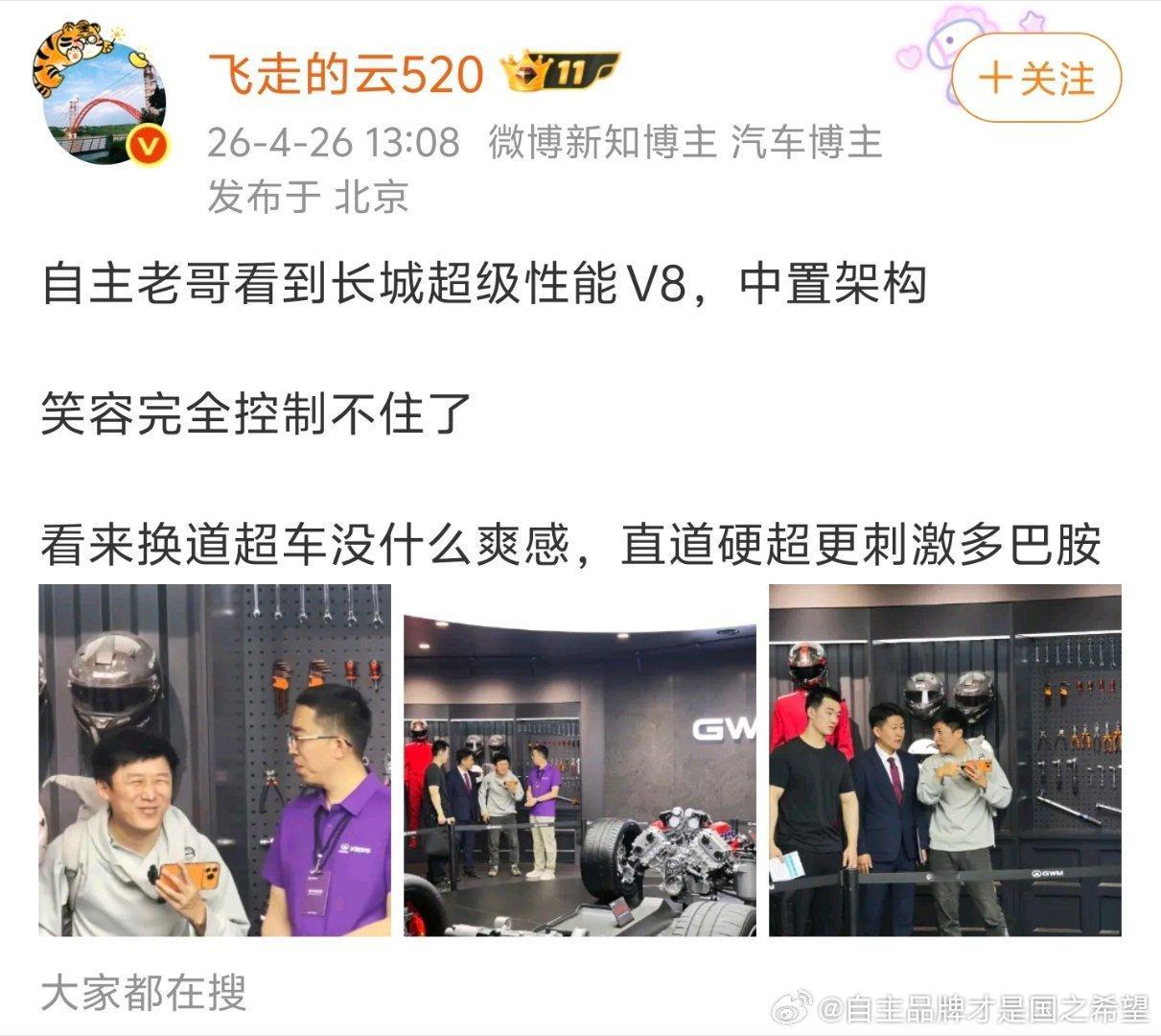 别这样 我笑出来不是因为直道硬超的缘故恰恰相反,是因为他告诉我现在离做出来还要一段时间,而且这套系统还带着变速箱。我是笑出来是因为长城对变速箱执着令我忍俊不禁 本次车展宝马高管来长城展台,长城的翻译介绍说,他们的车不追求极速,要追求圈速,且不说现在最快的量产电车圈速在仰望手里,腾势z很快又要刷出新成绩了,情况对于长城超跑来说极有可能面临发布时友商成绩已高山仰止的情况,倒时候还要靠你发点开除不健康跑车的榜单才能维持场面。 我当时也看到你了,只不过那个时候直播信号不好,我正忙着调信号。后来发现是那个展馆信号都不太好,迪子自己的展馆有信号增强,全天都比较流畅。