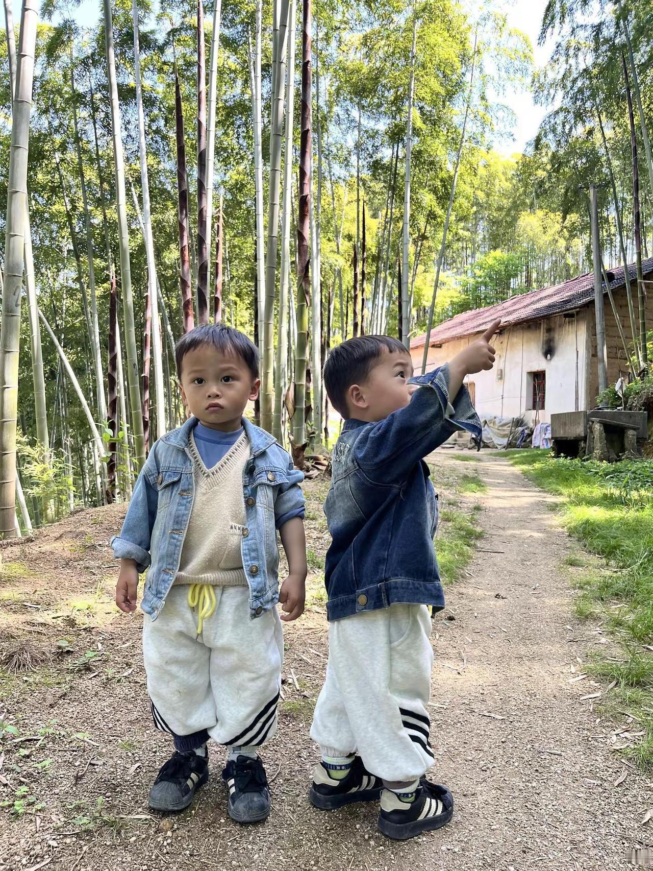 带你们来看看,我小时候长大的地方!交换手机里的绿色 竹林里的小朋友