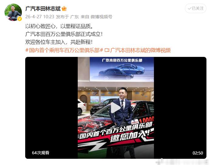 国内首个乘用车百万公里俱乐部 广本成立国内首个乘用车百万公里俱乐部,门槛直接定在90万公里,还得正常行驶。说实话,这得多大底气才敢这么干?