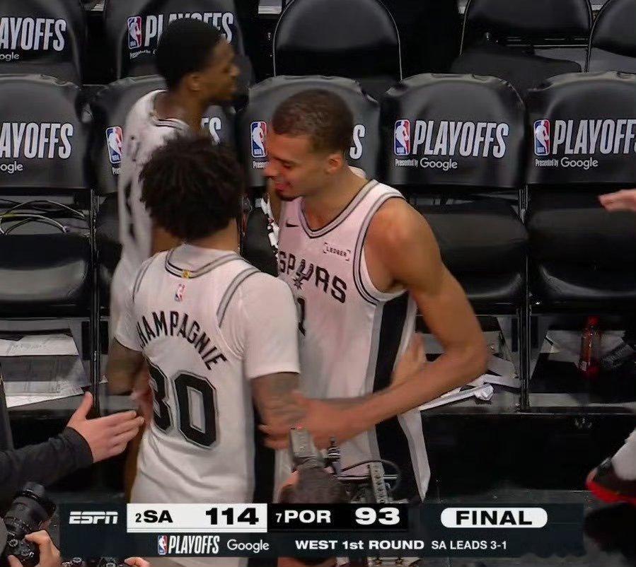 进攻马刺也不再用文班强打,而是打无球鞋,用后卫去找,创造更好的机会给文班,越逆转信心越足,投篮也全回来了。